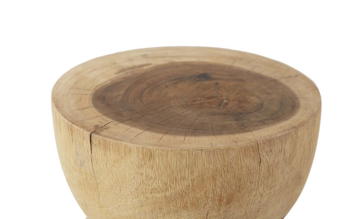 Mesa de apoio redonda feita em madeira de teca cor natural