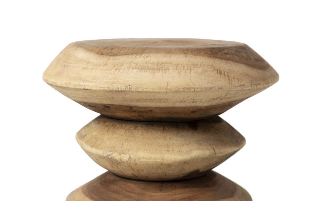 Mesa de apoio redonda feita em madeira de teca cor natural