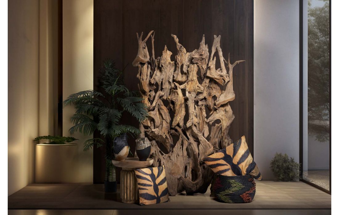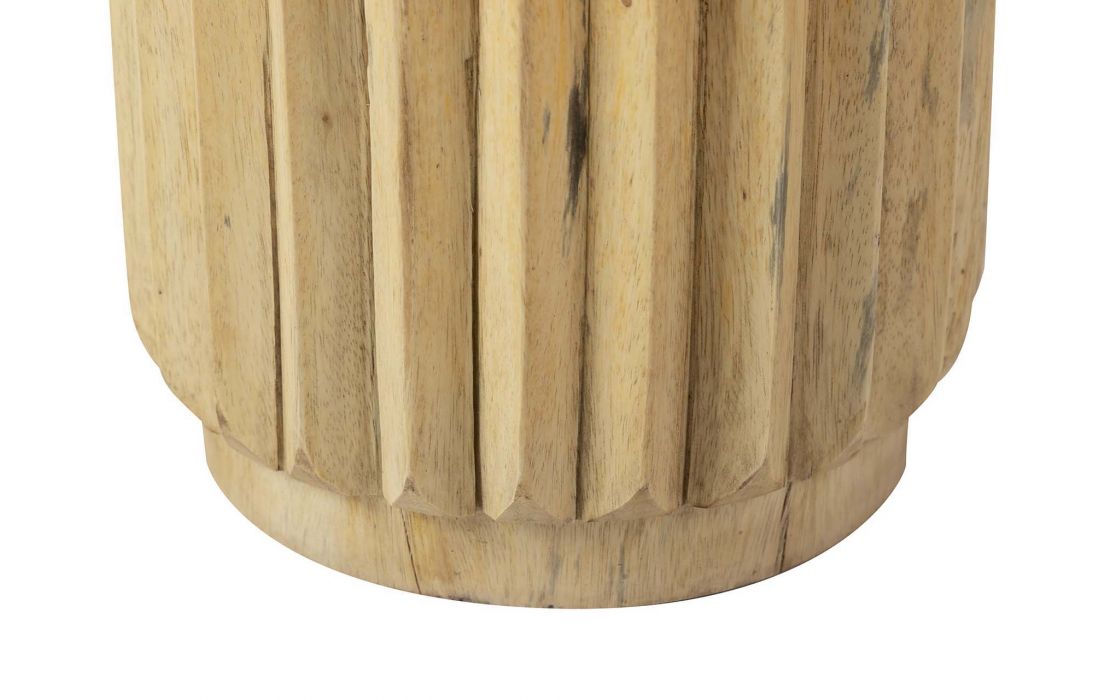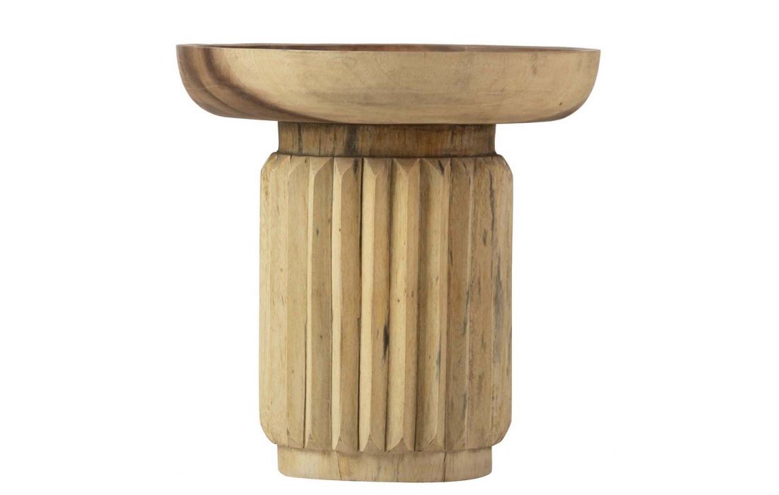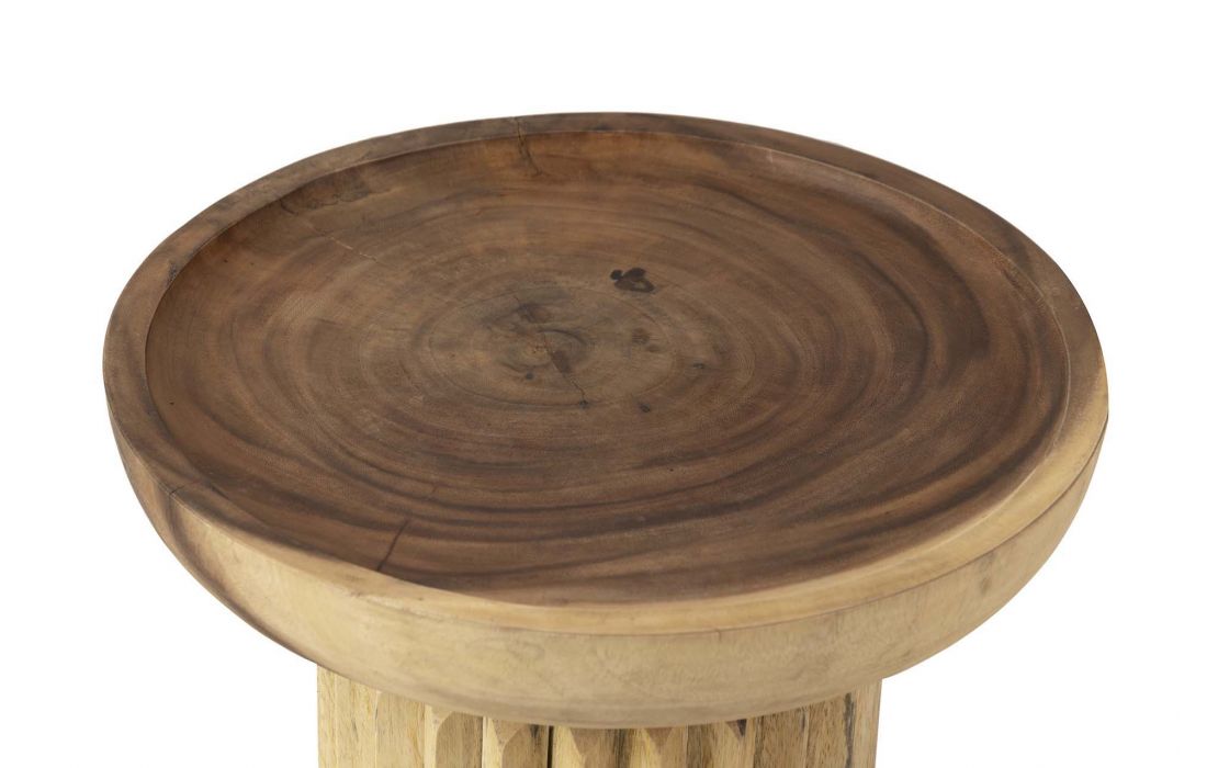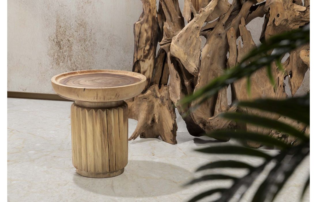 Mesa de apoio redonda feita em madeira de suar cor natural