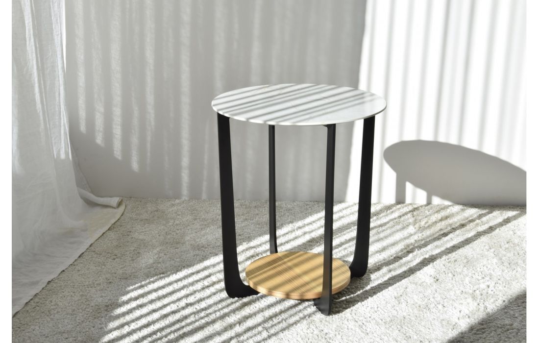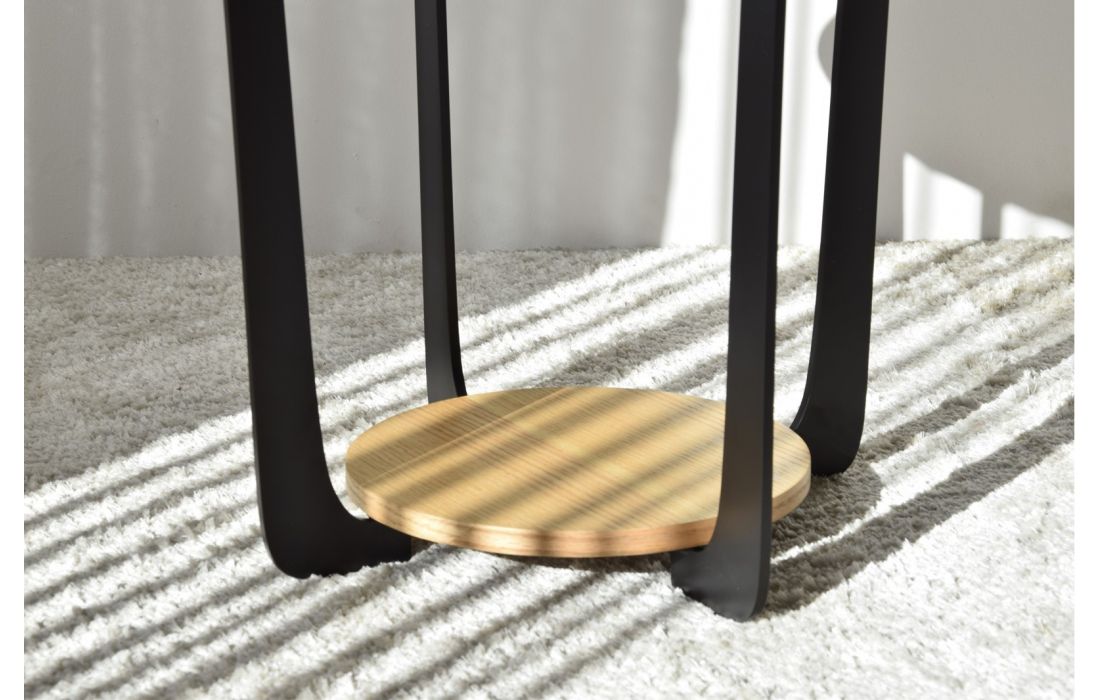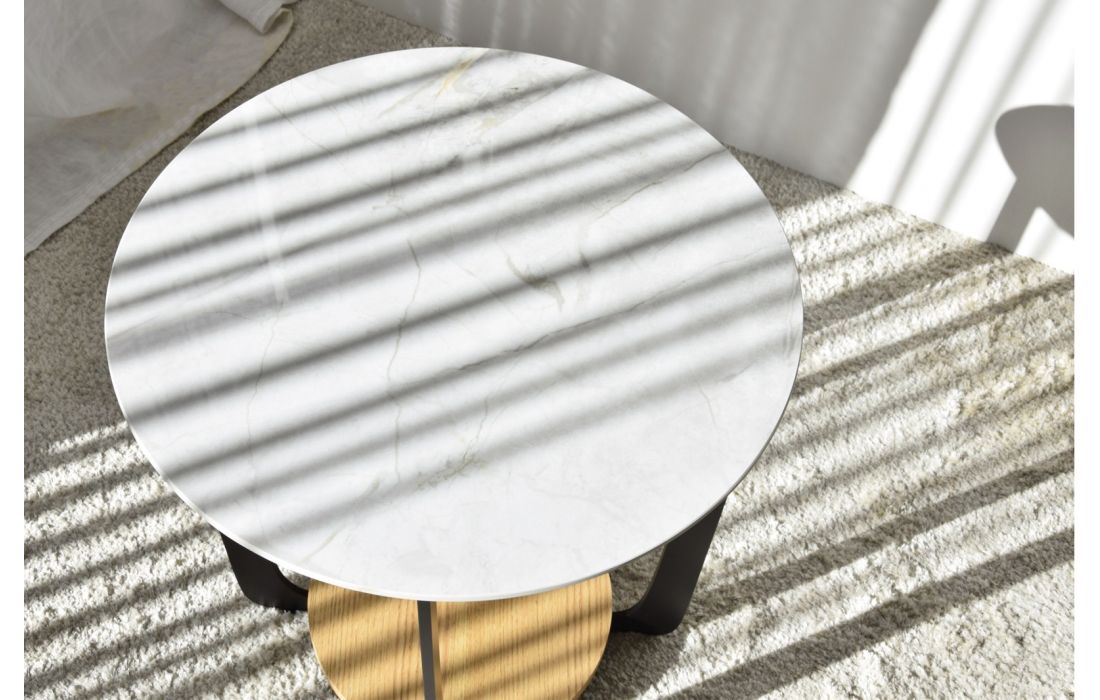 Mesa de apoio com tampo em cêramica, na parte inferior é madeira carvalho natural. Pés em metal.Destinatário :