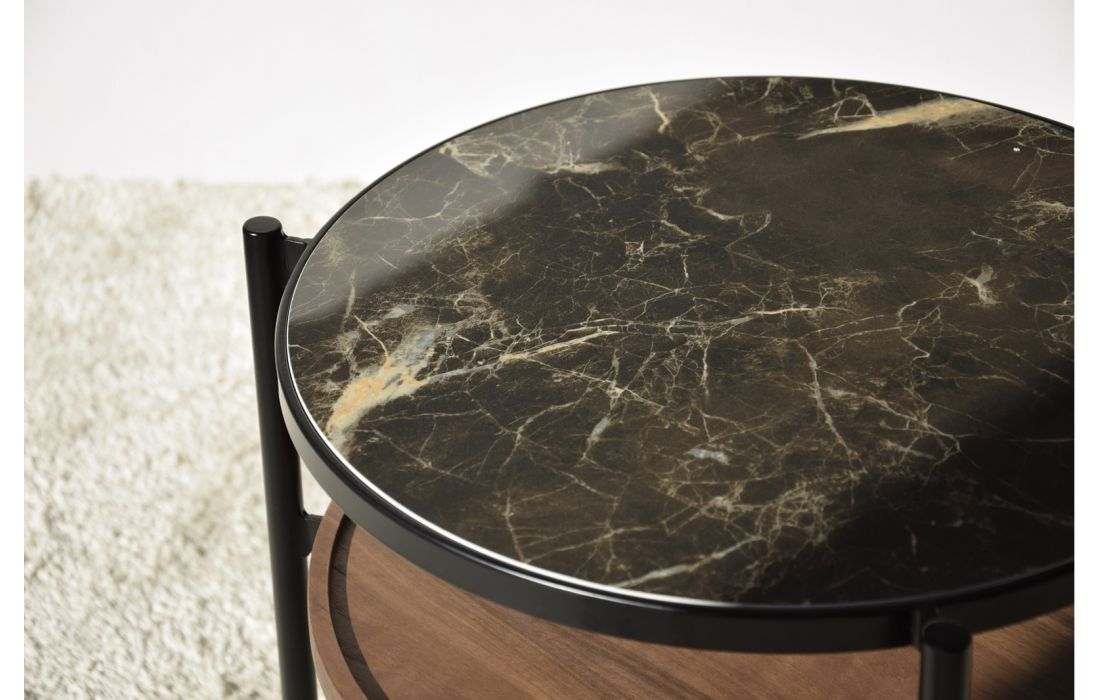Mesa de apoio com tampo em cêramica, na parte inferior é madeira carvalho natural. Pés em metal.Destinatário :