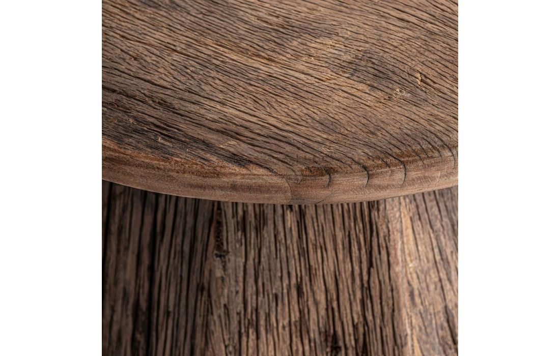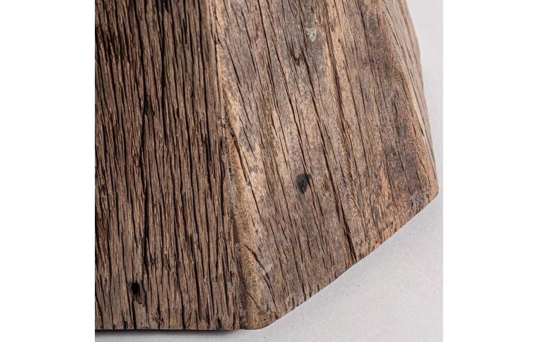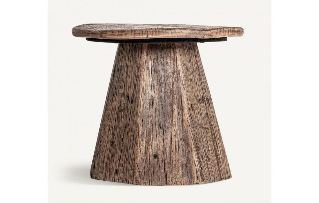 Mesa de apoio feita em madeira recuperada na cor castanha