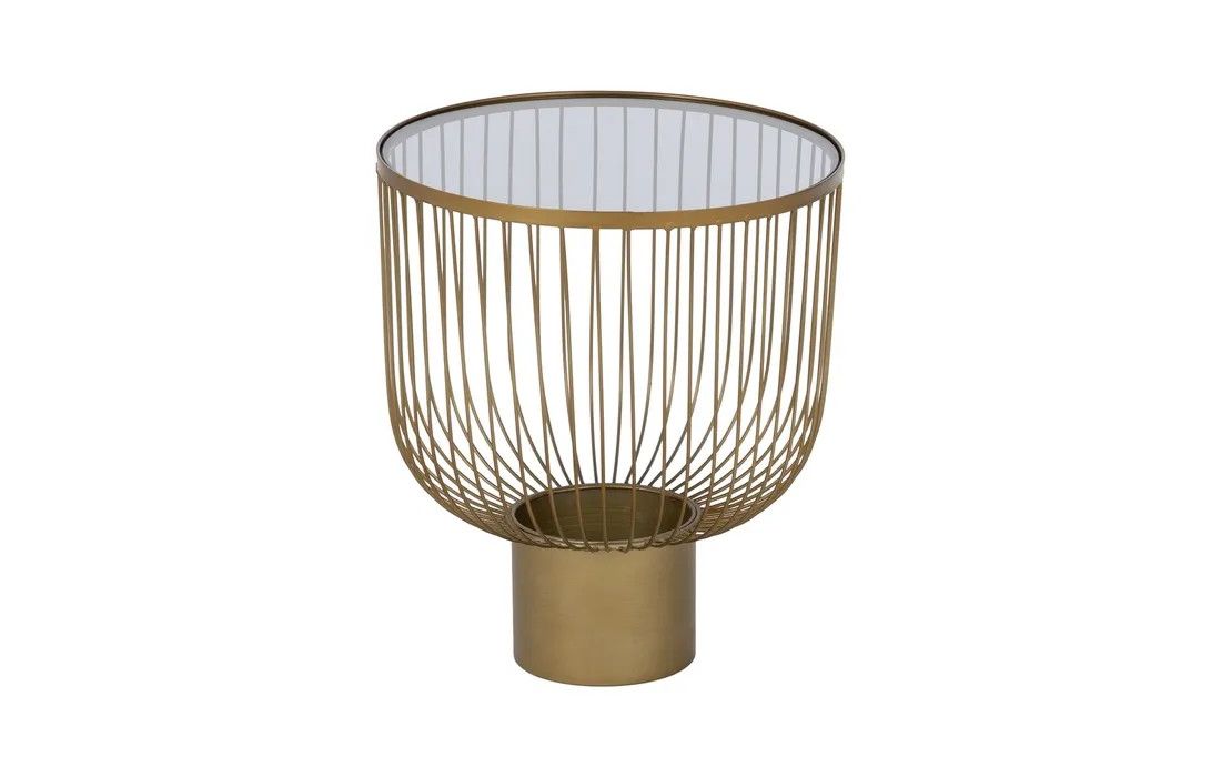 Conjunto de mesas de apoio em vidro e ferro com estilo modernoDestinatário :