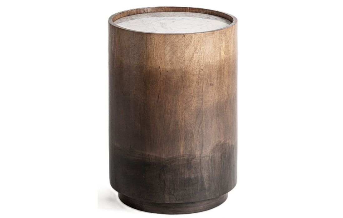 Mesa de apoio fabricada em mármore branco sobrepõe-se a uma base de madeira de mango, criando uma peça art déco que irradia serenidade e sofisticaçãoDestinatário :
