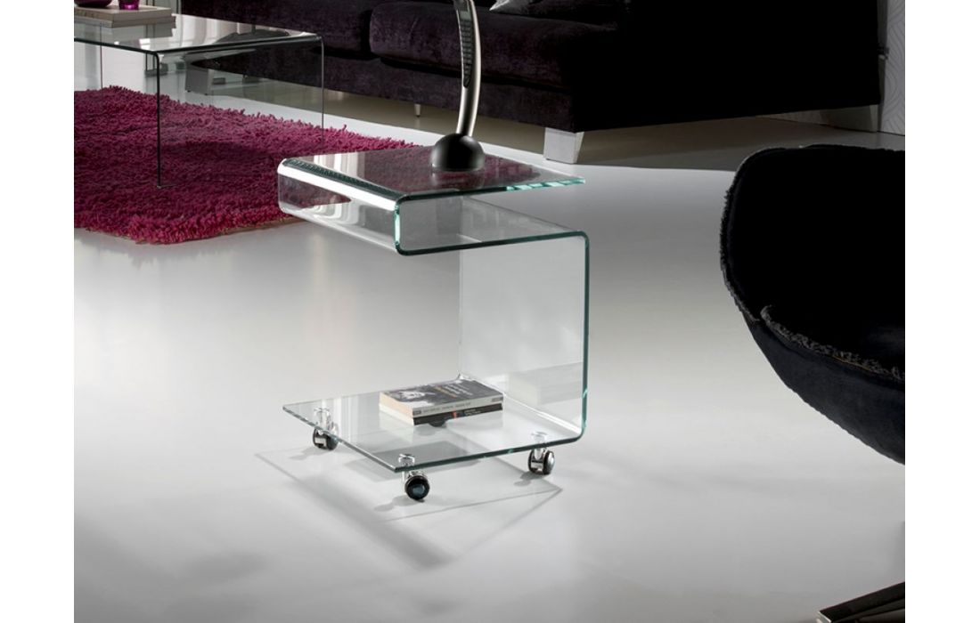 Mesa de apoio com rodas fabricada em vidro curvado de 10 mmDestinatário :