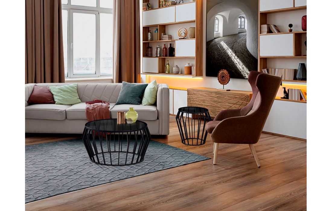 Mesa de apoio realizada em metal, acabamento mate e tampo de vidro de 8 mmDestinatário :