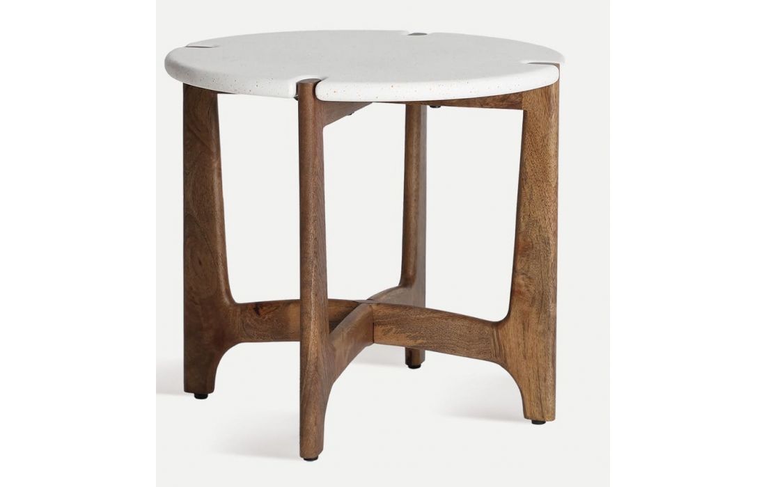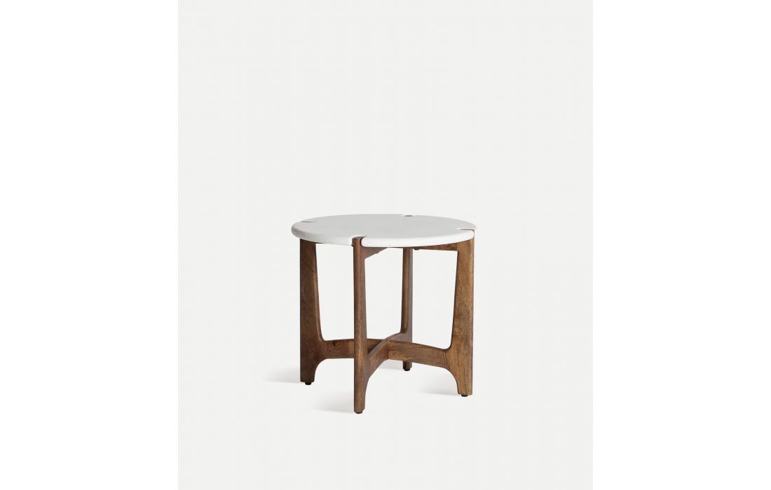 LAAX é o jogo de equilíbrio entre madeira de mango e mármore sintético. Suas formas arredondadas e acabamento elevam qualquer ambiente de descanso ou recepção.