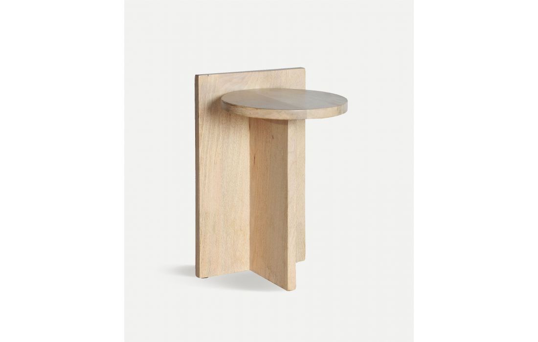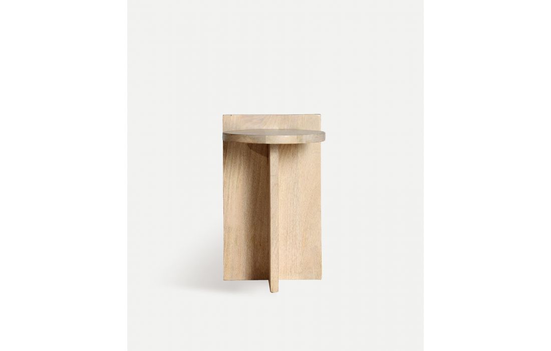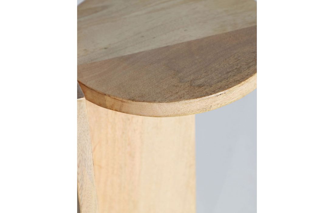 Design minimalista e funcional em madeira natural de mango. Sua estrutura geométrica traz um toque moderno e elegante para qualquer espaço. Ideal como uma mesa lateral em salões, quartos ou cantos de leitura.