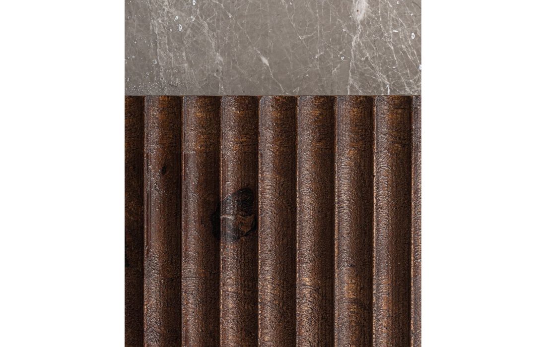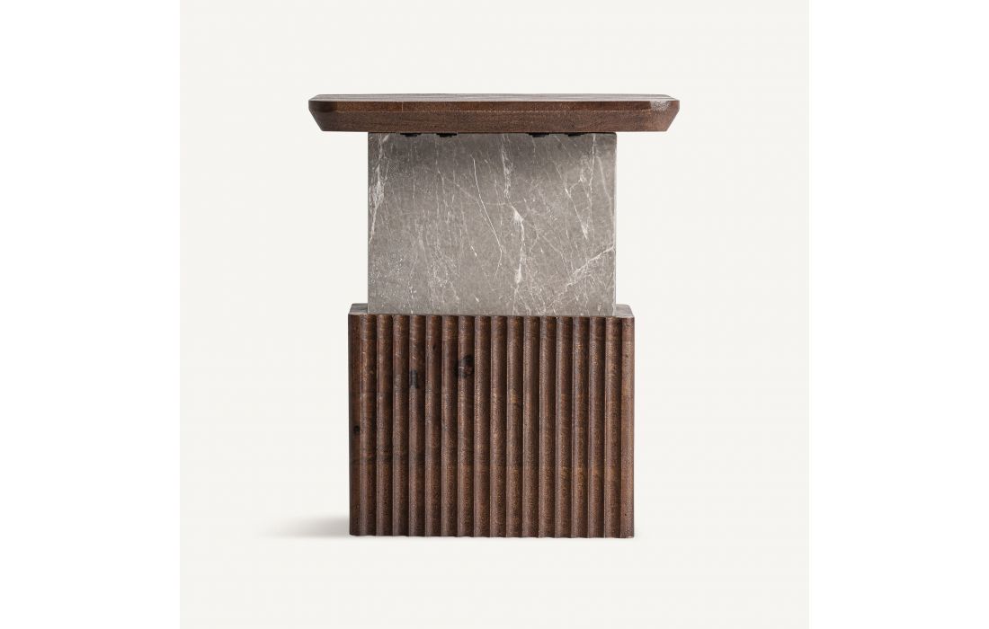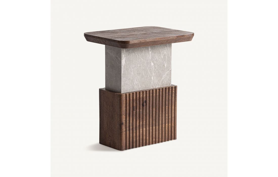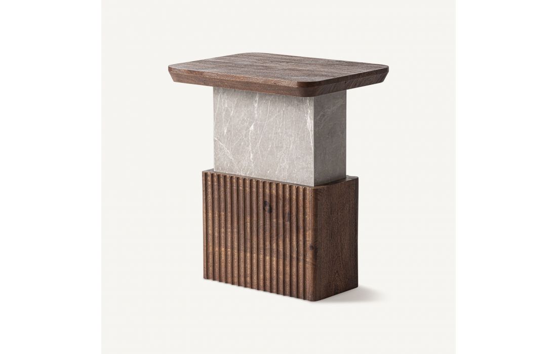 Esta mesa de apoio combina geometria, textura e materialidade em uma peça de forte presença arquitetônica. A madeira de mango em tom marrom dialoga com o mármore cinza granulado, criando um contraste equilibrado entre calor e sofisticação.Destinatário :