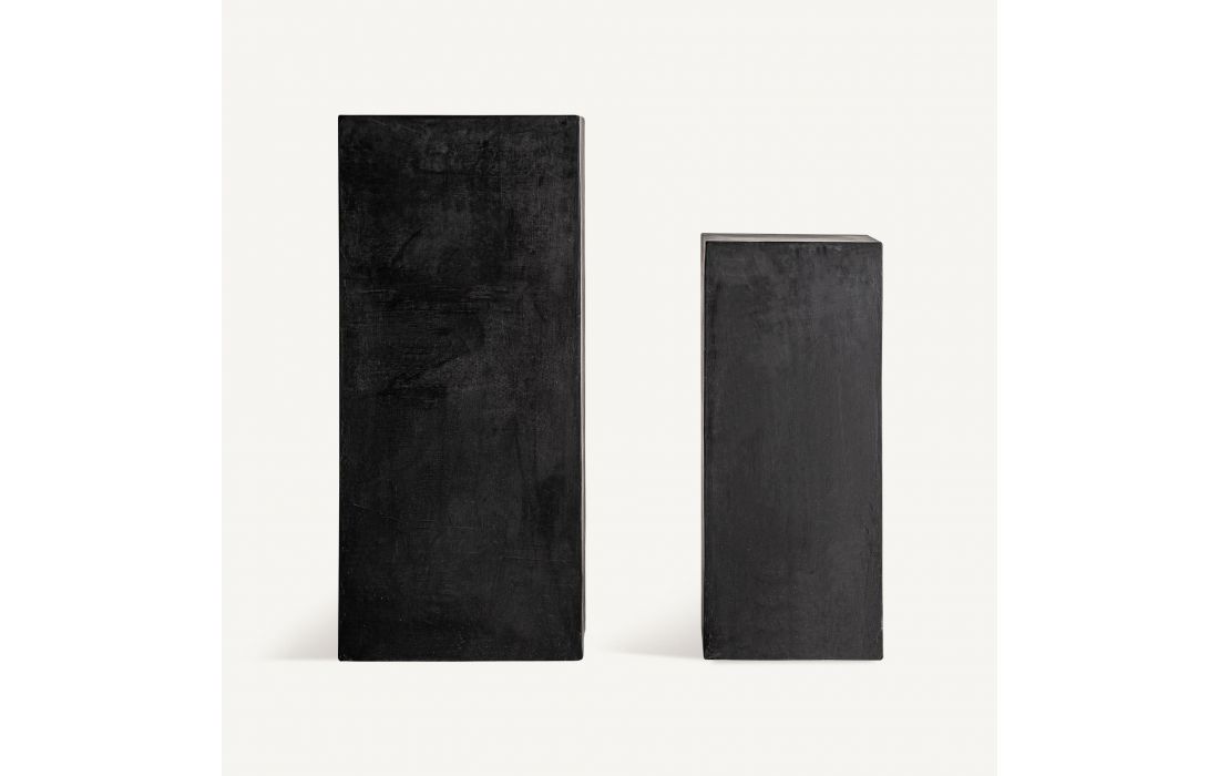 Este conjunto de mesas de apoio é feito de terracota negra. A sua presença sóbria e contemporânea faz com que seja um suporte ideal para composições esculturais ou vegetais.Destinatário :