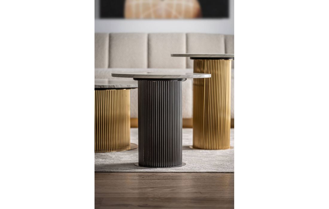 Esta mesa de apoio é a definição de design intemporal. Feita em aço e complementada com mármore sintético, valoriza qualquer ambiente.Destinatário :
