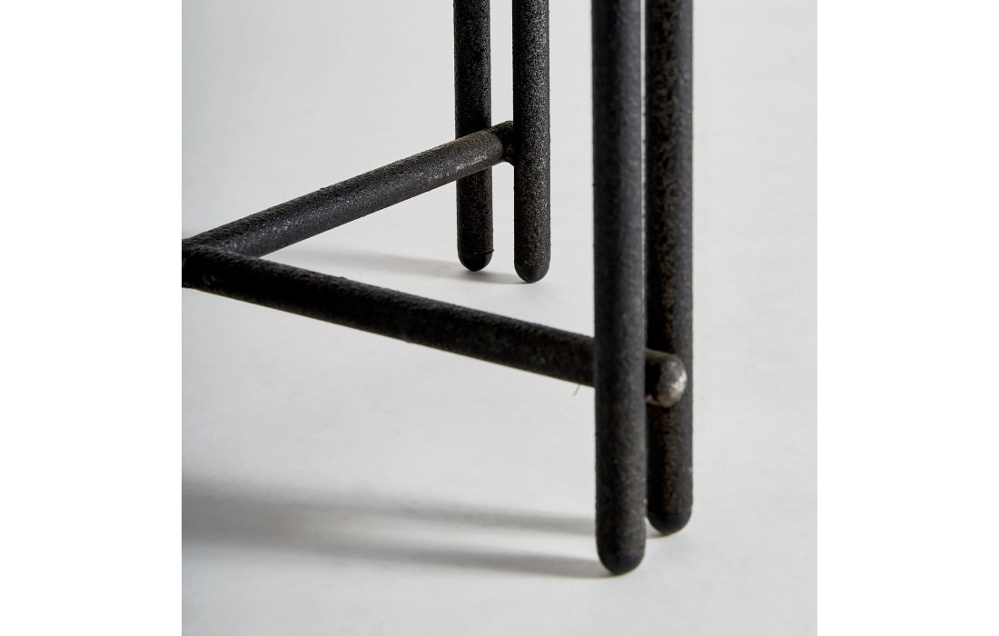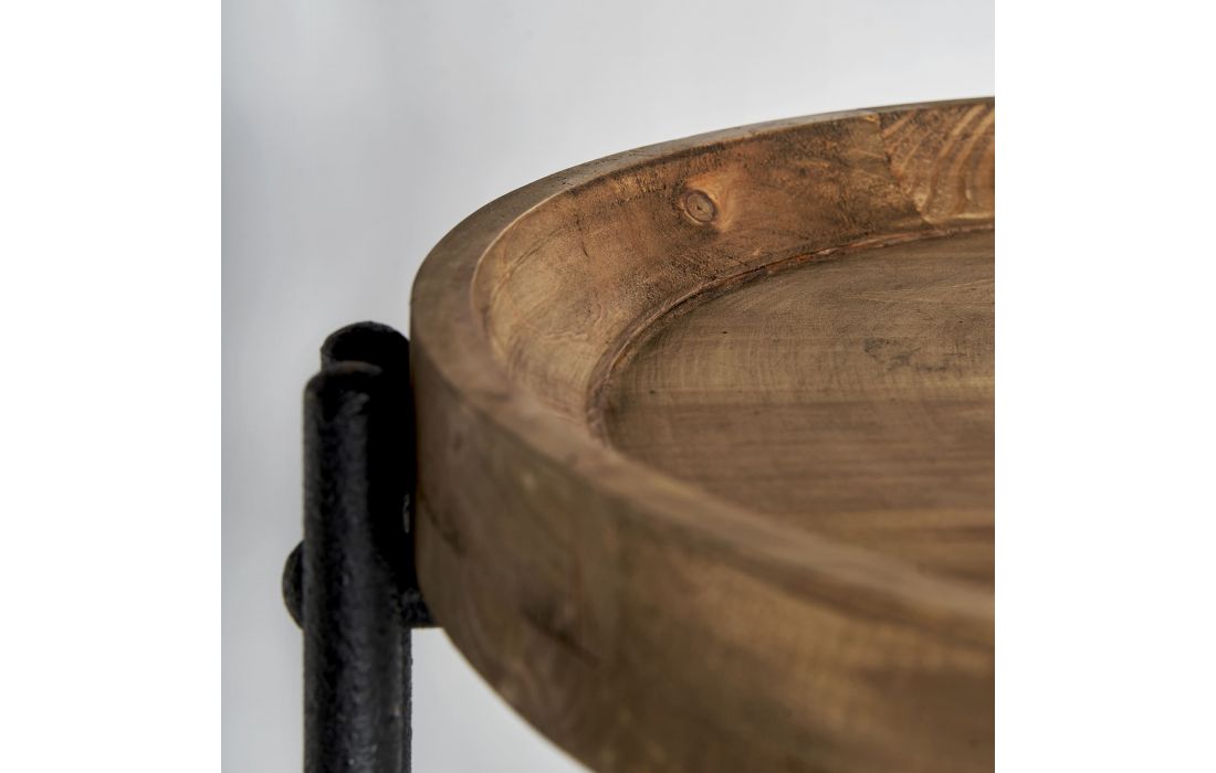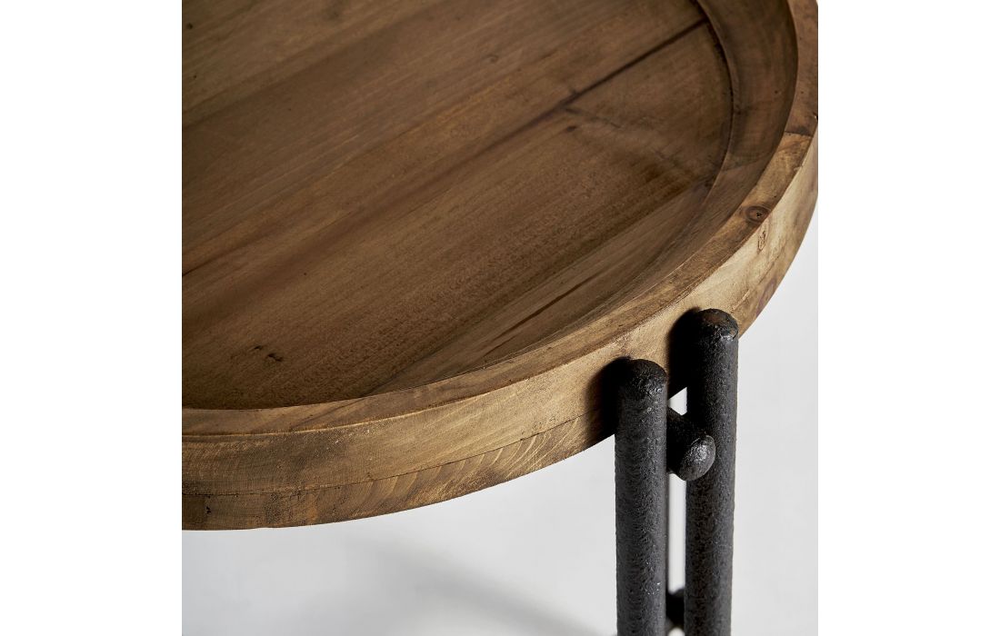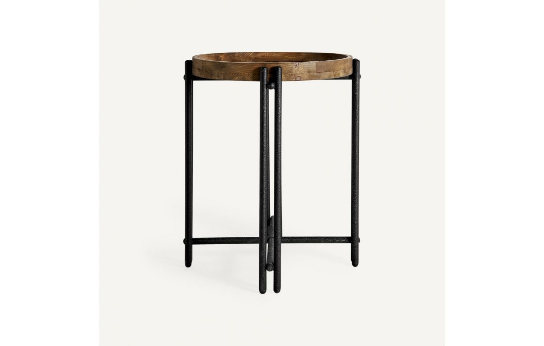 Esta mesa de apoio, feita em madeira de olmo e ferro, combina acabamentos envelhecidos com linhas modernas.Destinatário :