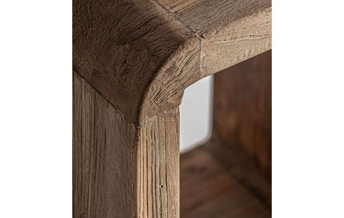 Mesa de apoio em madeira de teca reciclada, com design minimalista e linhas suaves. A estrutura robusta e o vão aberto conferem funcionalidade, esta mesa acrescenta autenticidade e charme sustentável a qualquer ambiente.Destinatário :