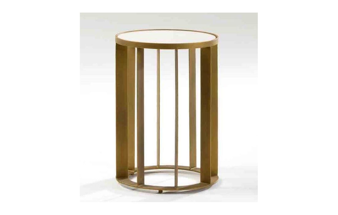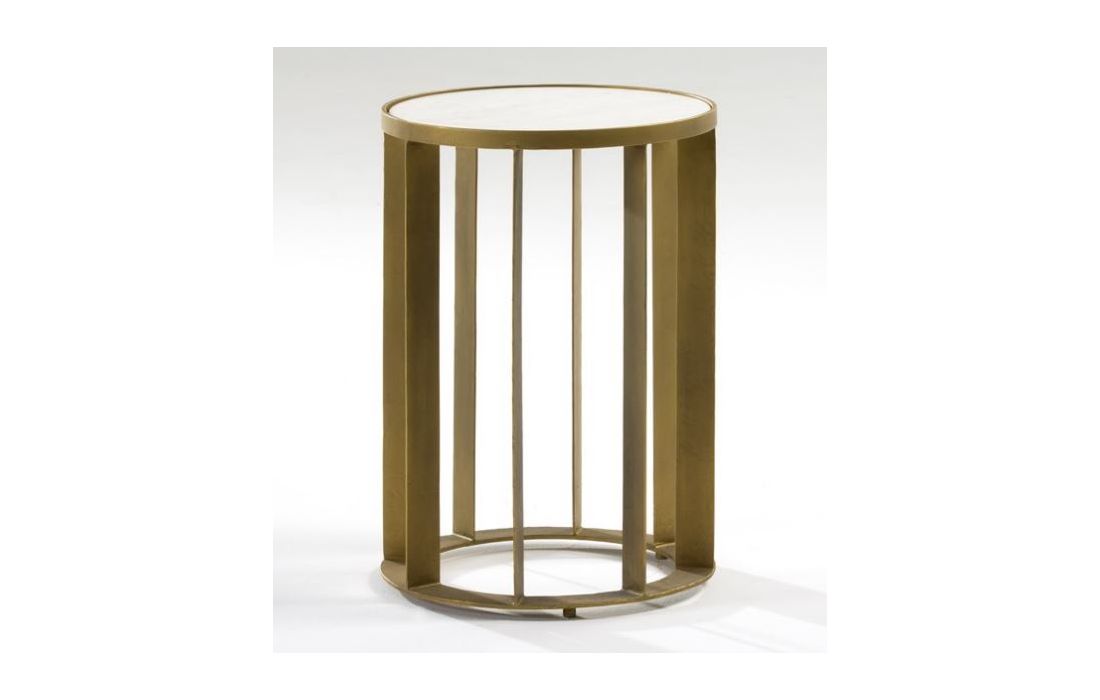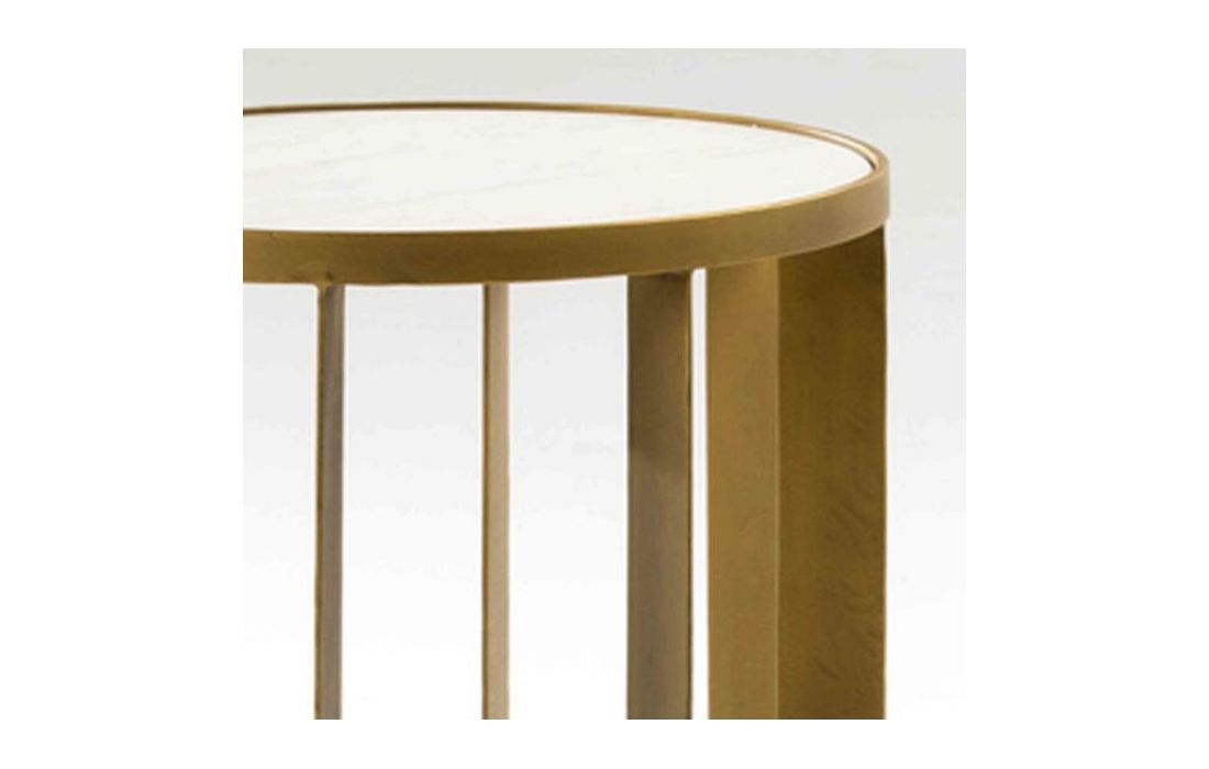 Mesa de apoio em metal bronze e mármore branco