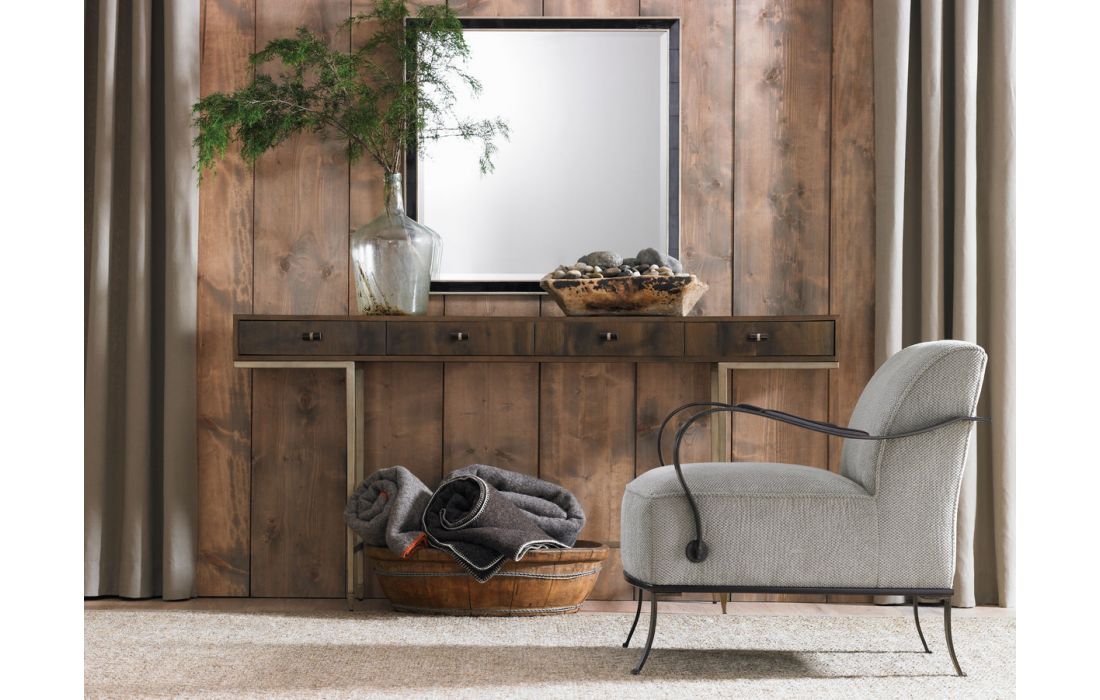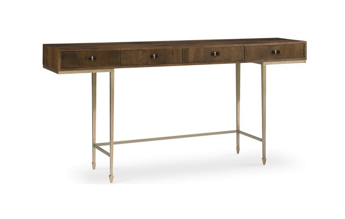 Consola com estrutura de metal em carvalho e com 4 gavetas.