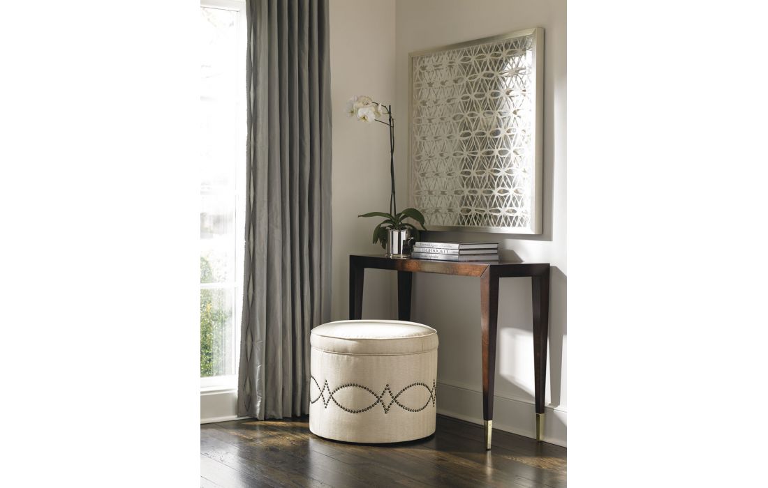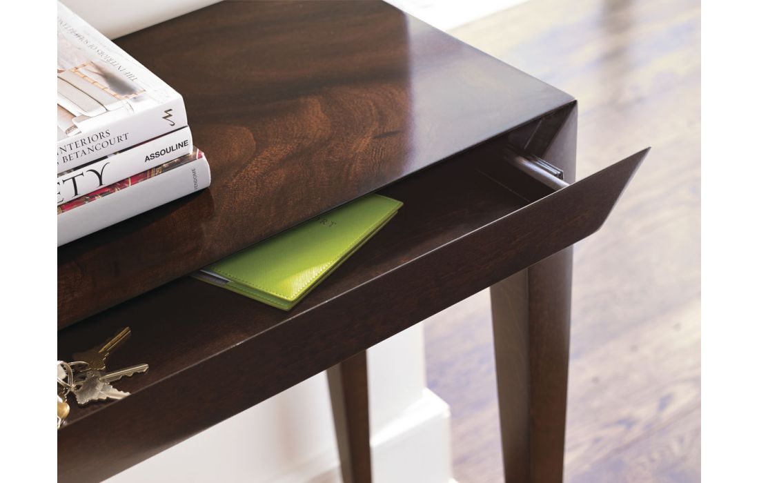 Consola em madeira nobre com 1 gaveta e pormenores nos pés em lingotes de ouro.