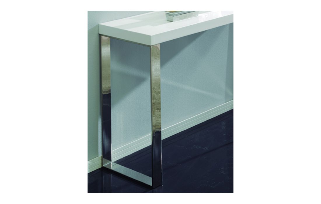 Consola com tampo lacado branco com pés em inox.