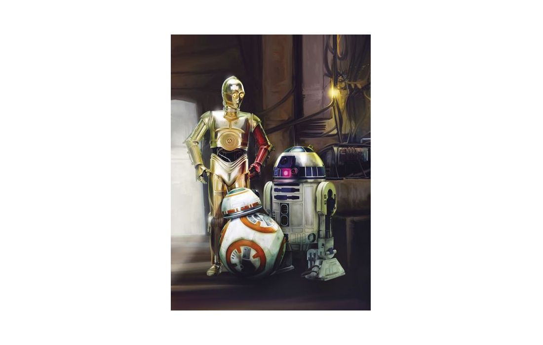 Droids R2-D2, C-3PO e BB-8 em um design elegante - Uma reunião com os droids populares da saga mundialmente famosa de Star Wars.