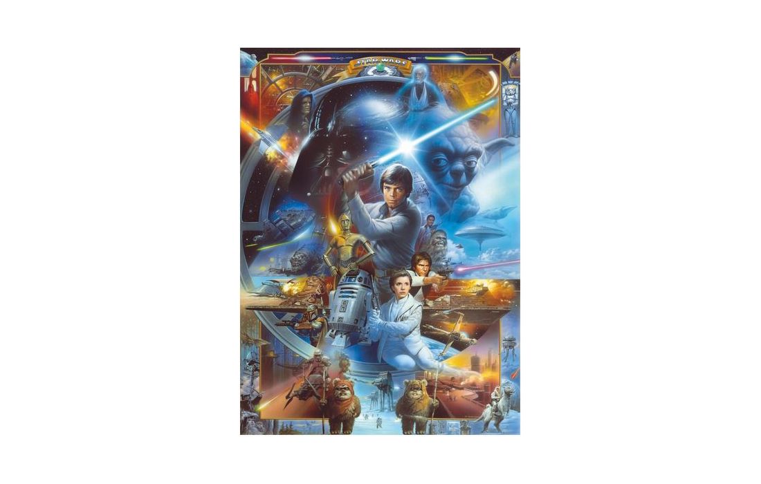 Vintage-olhar aventura intergaláctica: Luke Skywalker e amigos lutam o lado negro da Força.
