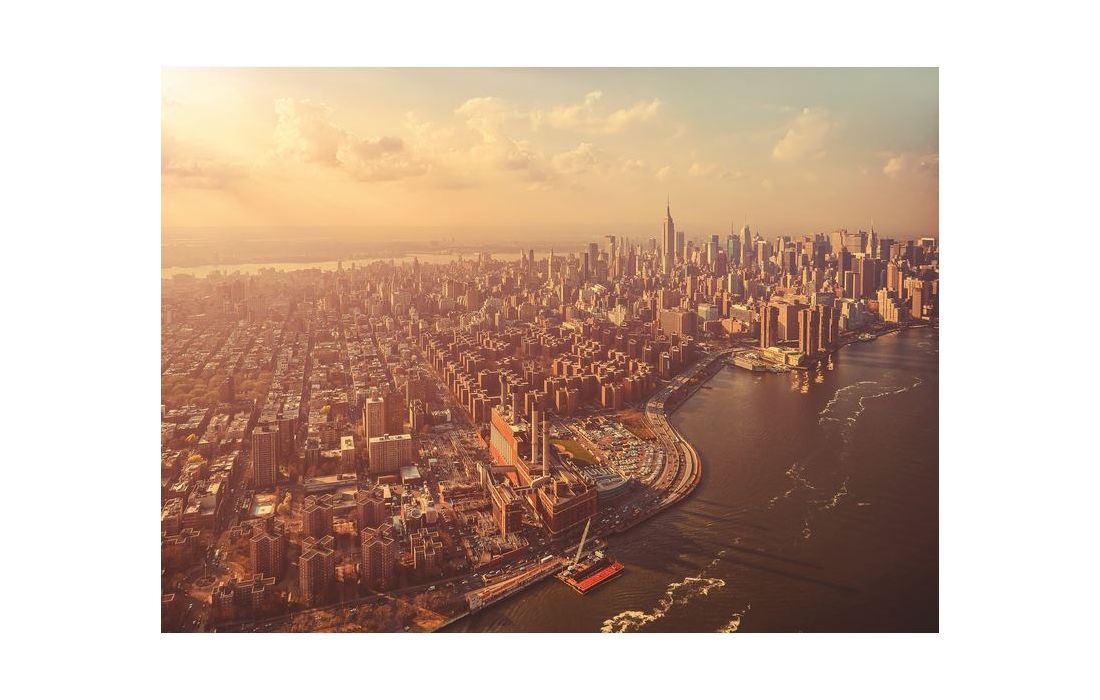 Todos os olhos em Manhattan - o horizonte impressionante do bairro de Nova York estende-se ao longo do East River reluzente.