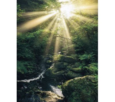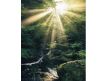 Os sunrays dourados estão fazendo á sua maneira através do thicket verde.