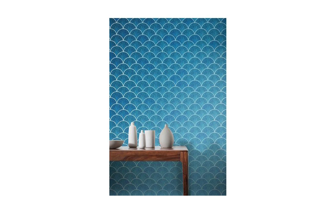 Onda em cima de onda em cima da onda ... o teste padrão scaly brilha um azul prateado.