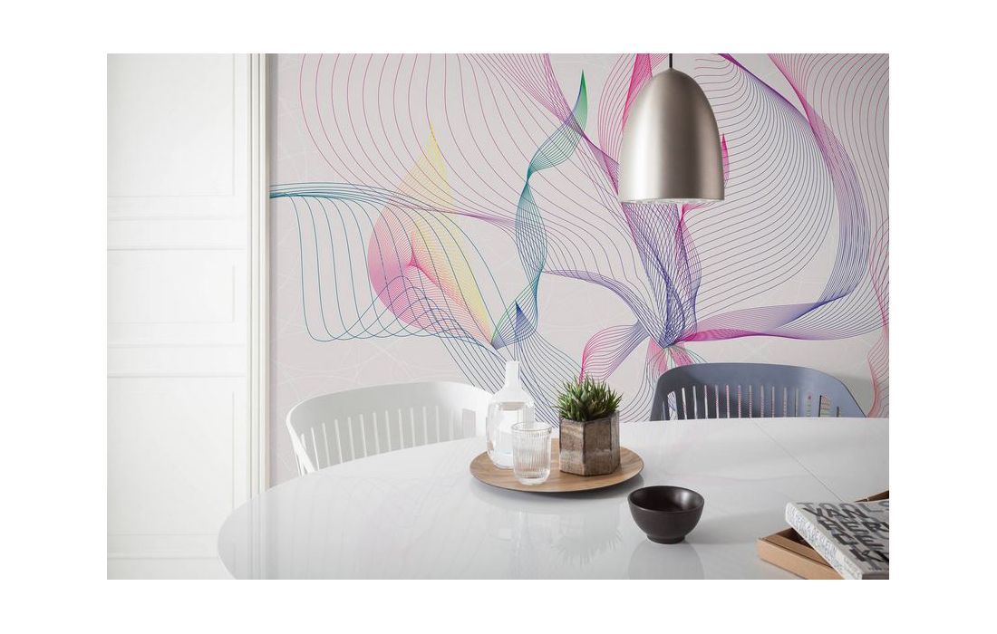 Linhas gráficas e gradientes de cores se metamorfoseiam em formas orgânicas.