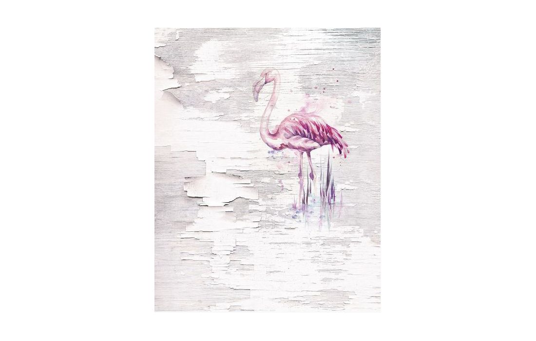 A parede de madeira áspera escamosa contrasta starkly com o motivo delicado da aguarela.