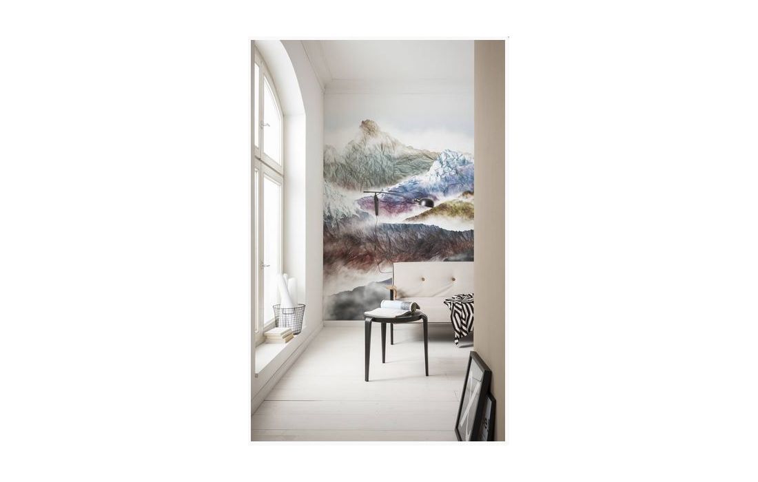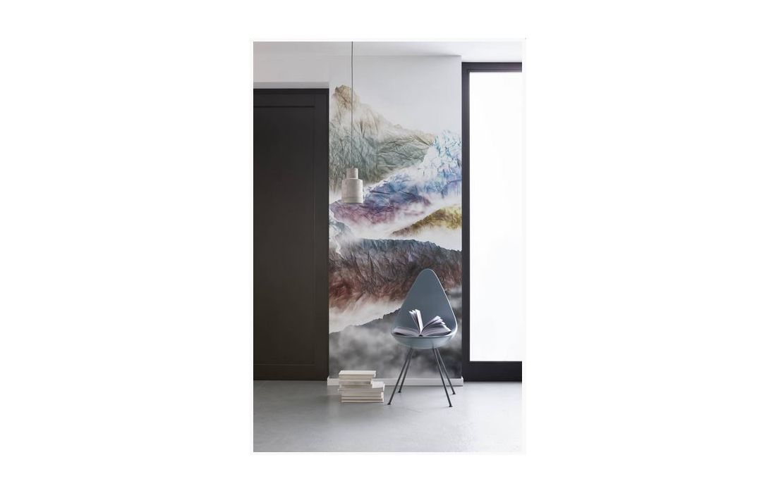 Uma colagem de papel levanta-se para formar picos coloridos da montanha.