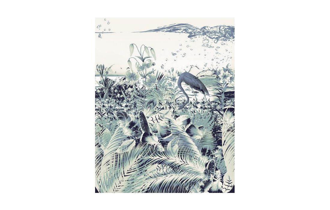 Sob a superfície: representação surrealista de um animal tropical e mundo de plantas em quatro variações de cor.