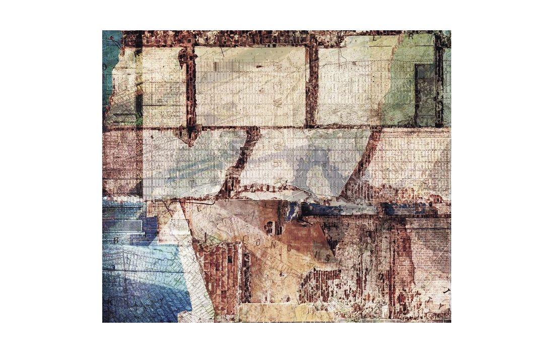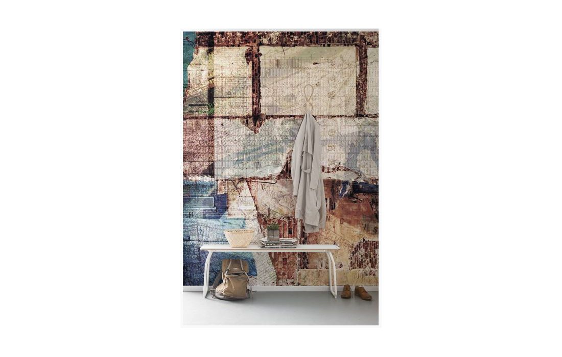 New York em um disfarce diferente: As paredes de tijolo, as frentes da casa e os mapas da cidade são combinados para criar uma obra de arte moderna.
