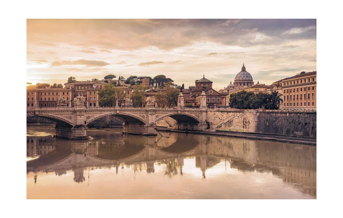 "A Cidade Eterna" com a sua imponente Basílica de São Pedro na luz dourada e quente da noite.