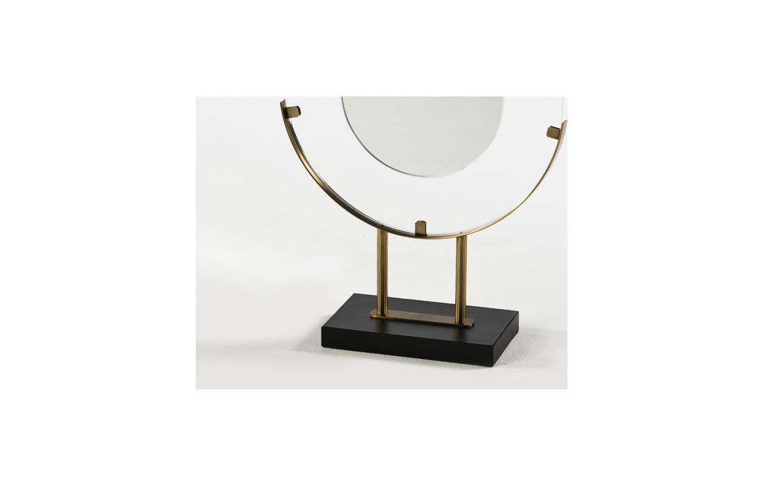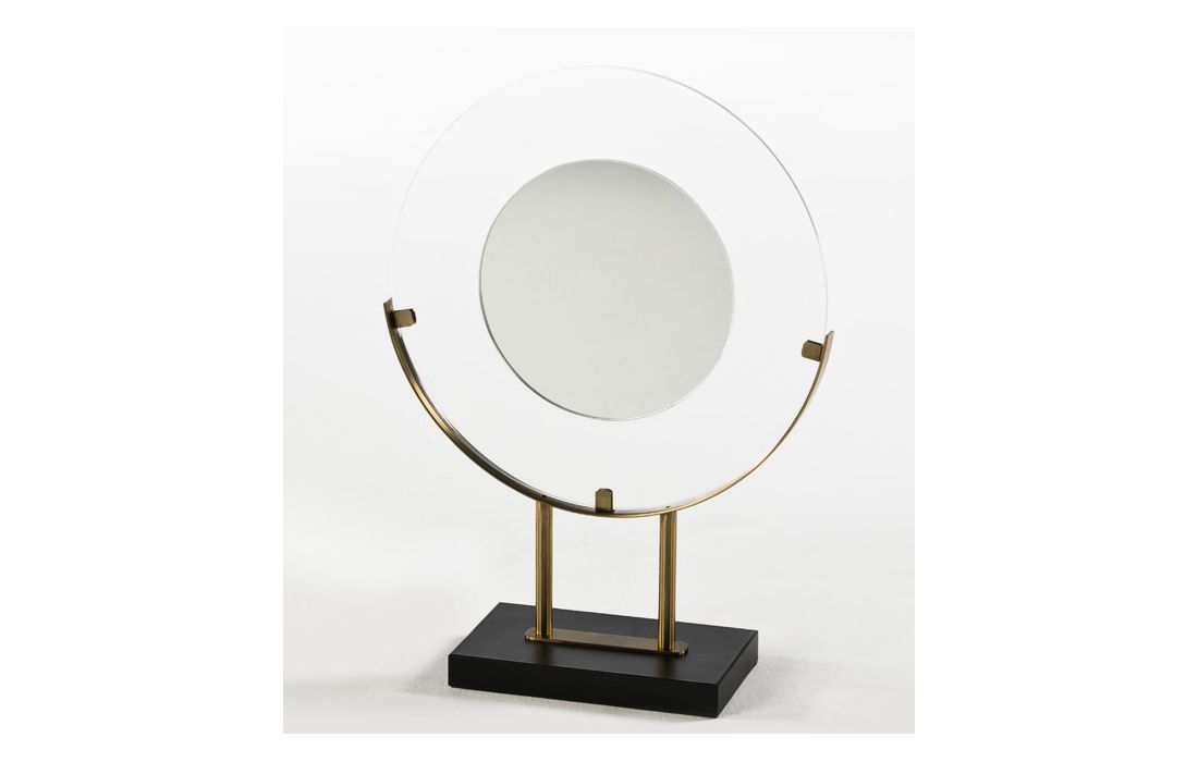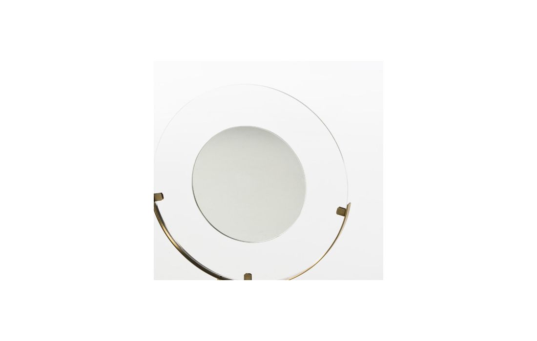 Peça decorativa com estrutura de metal e prato em vidro.