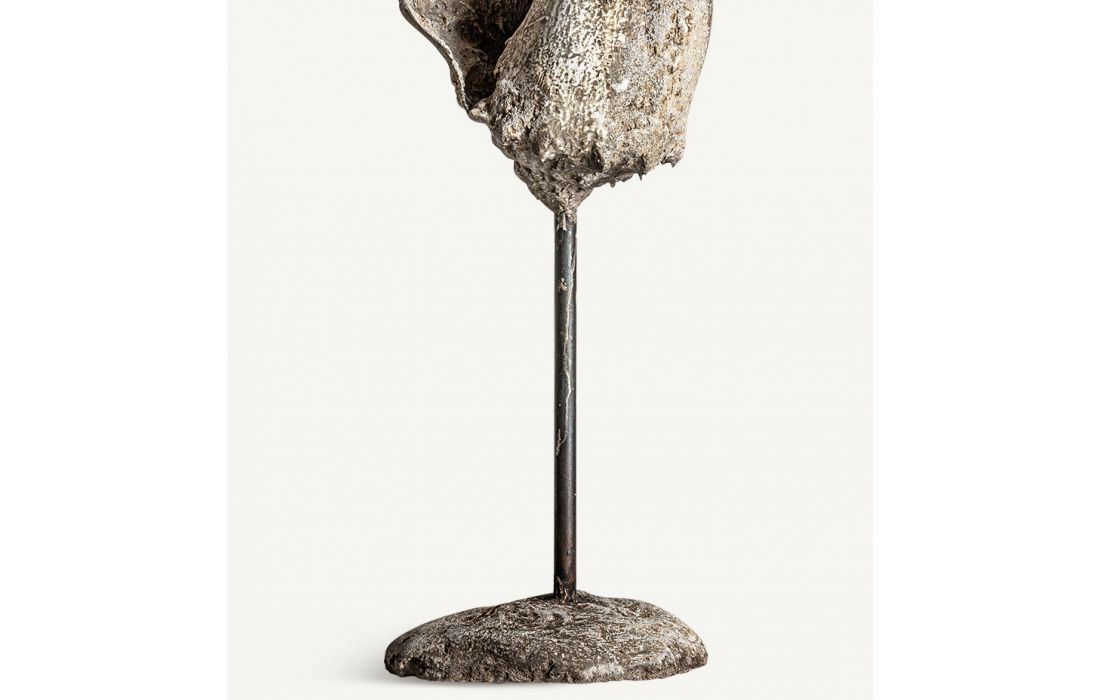 Figura decorativa feita à mão de estilo étnico em resina cor branco roto envelhecido e ferro
