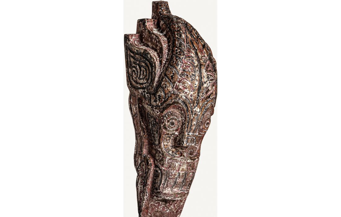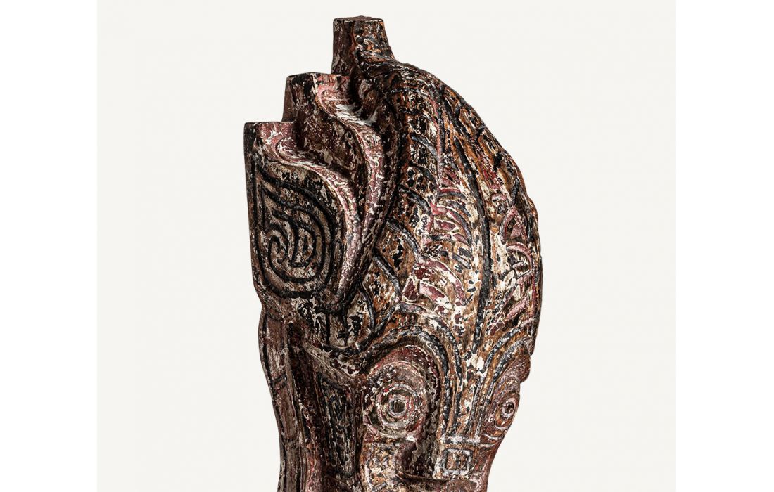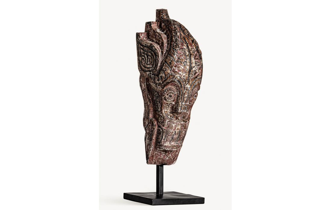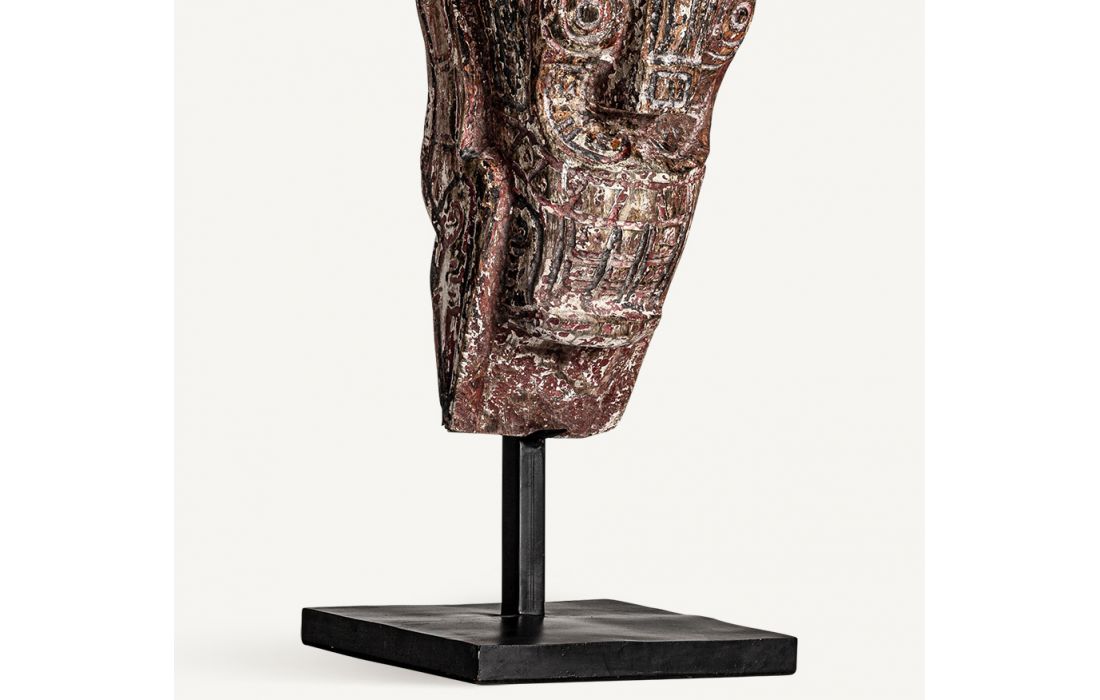 Figura decorativa feita à mão de estilo étnico em madeira tropical cor natural envelhecido