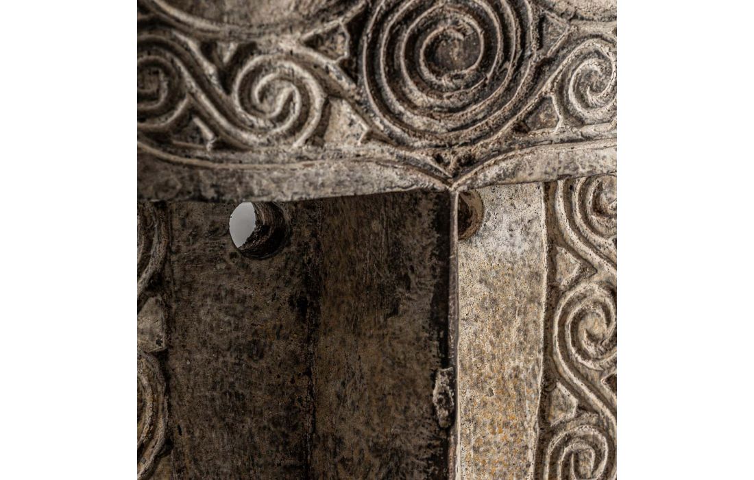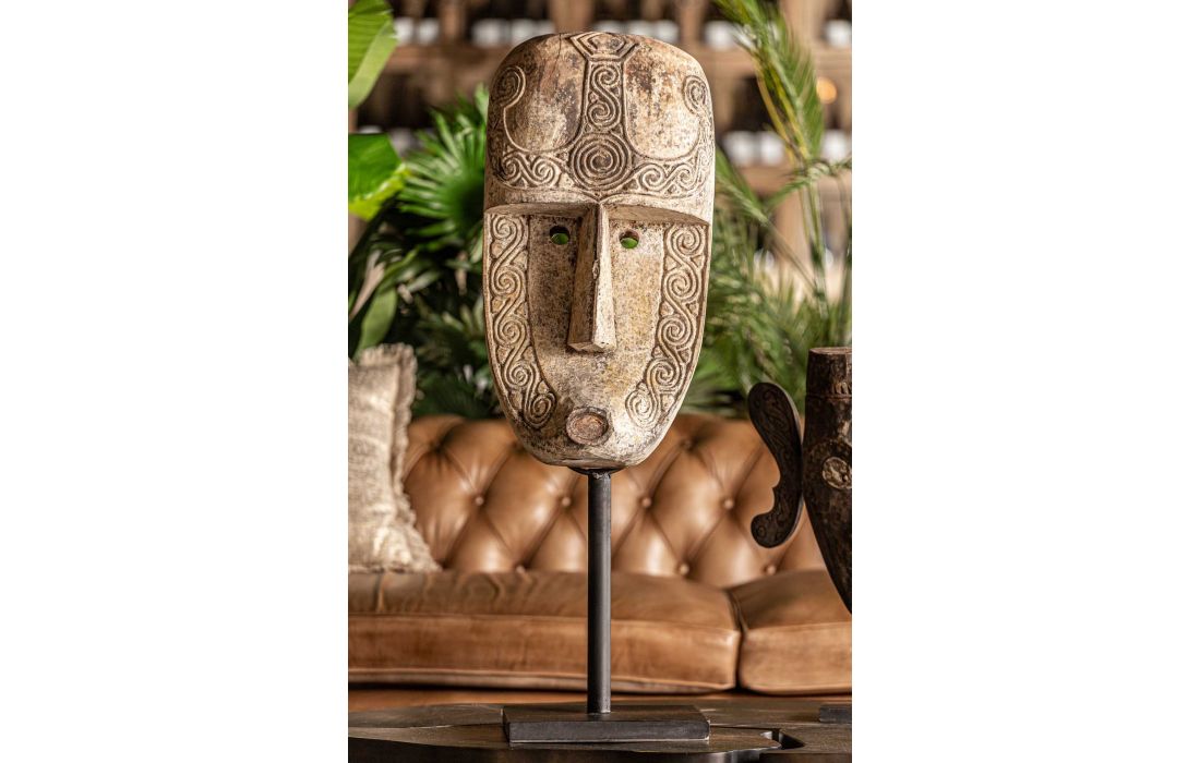 Figura decorativa feita à mão de estilo étnico em madeira tropical cor natural envelhecido