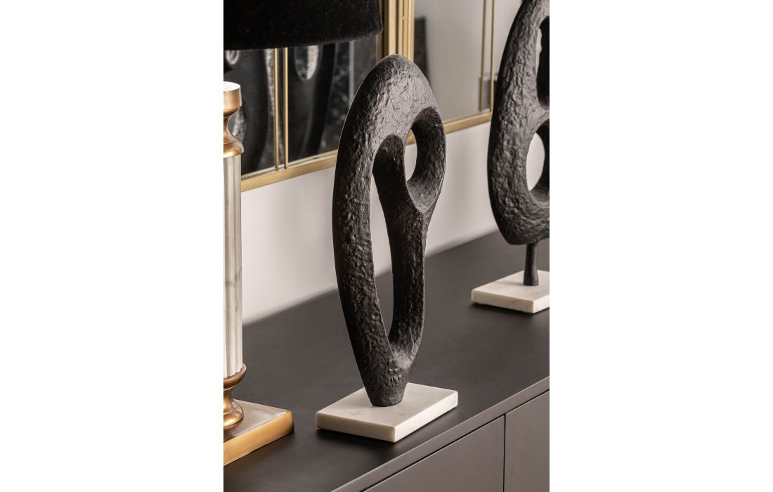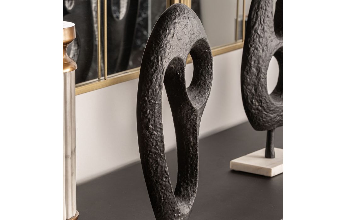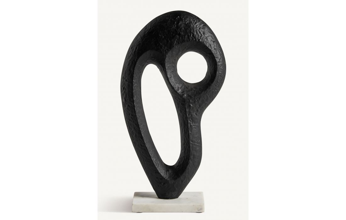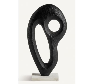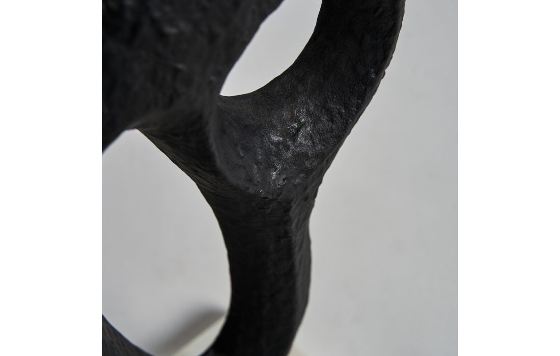 Escultura de estilo contemporáneo em aluminio cor preta e base de marmore branco