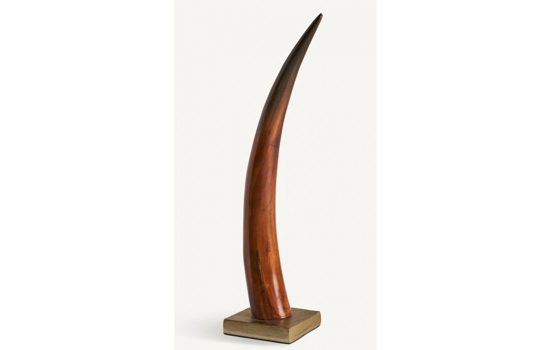 Peça decorativa de estilo nórdico em osso cor castanho e base de ferro