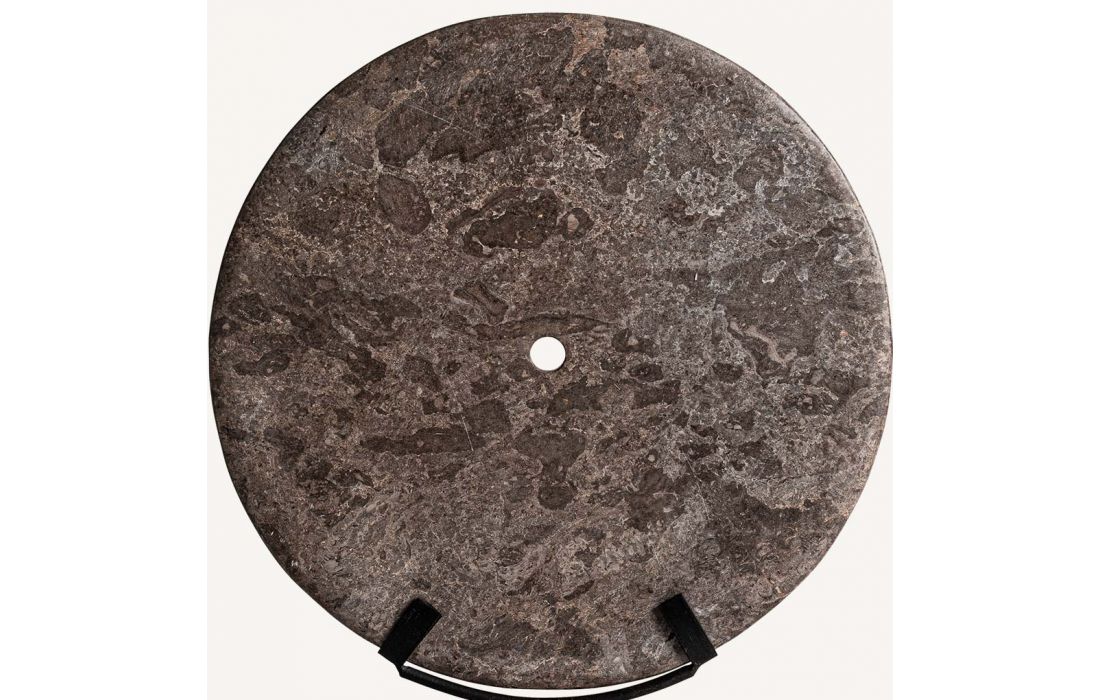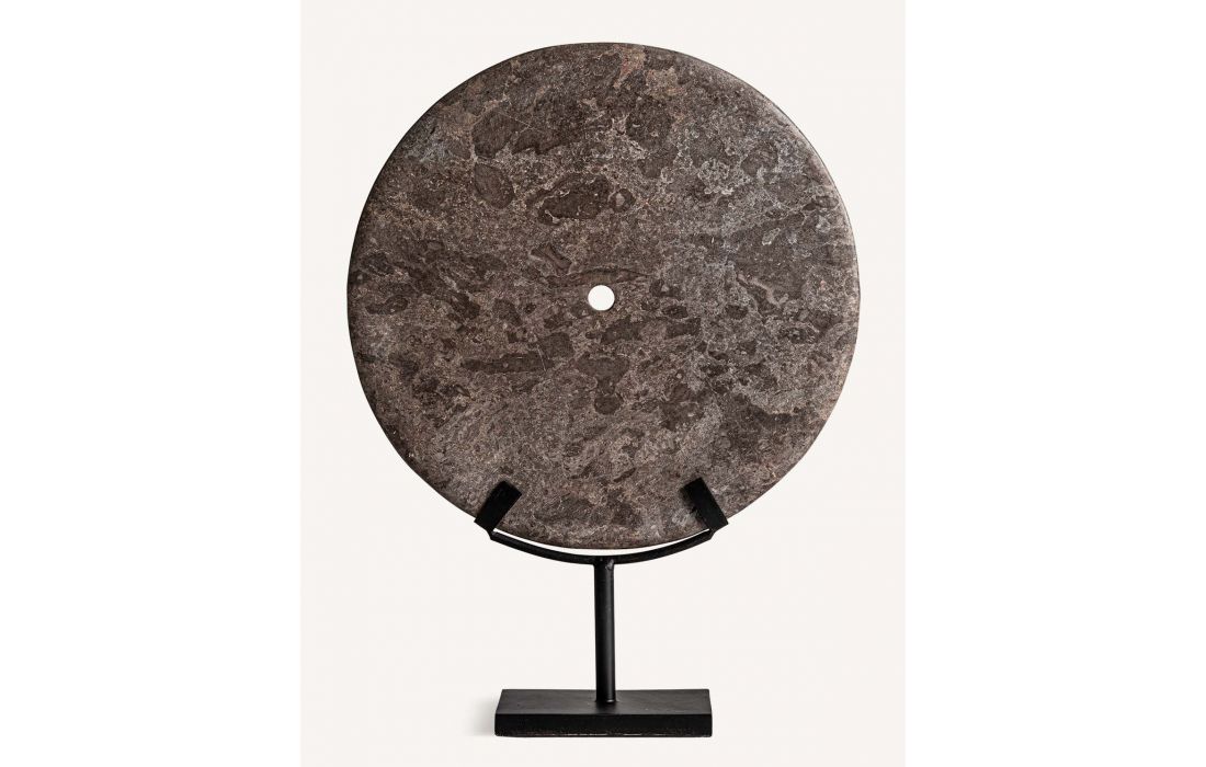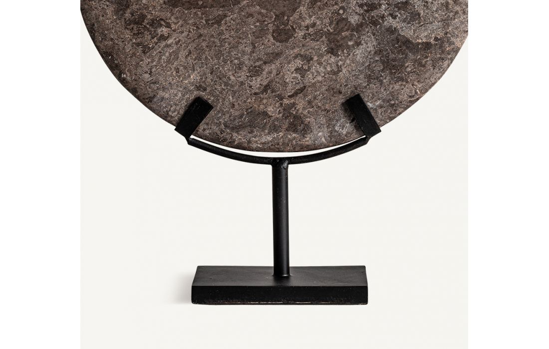 Peça decorativa de estilo étnico feita à mão em marmore cor castanha e base de ferro preto