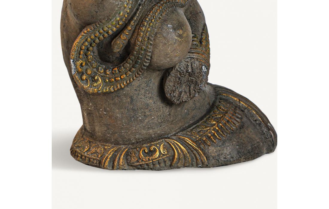 Figura de orangotango com auscultadores e óculos. Realizada em polirresina, acabamento em folha de ouro.Dimensões em cmL 28 P 26 A 36Prazo de Entrega05 a 10 dias