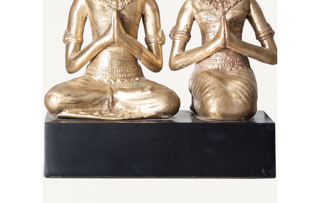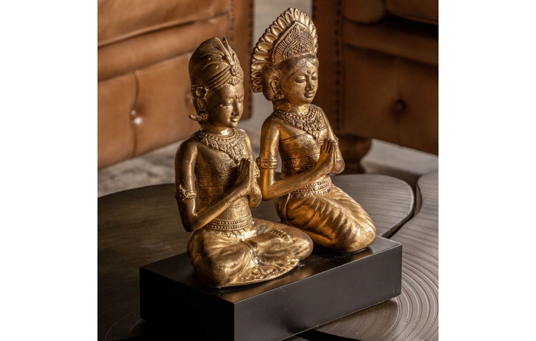 Figura decorativa de estilo oriental feita em bronze cor dourada