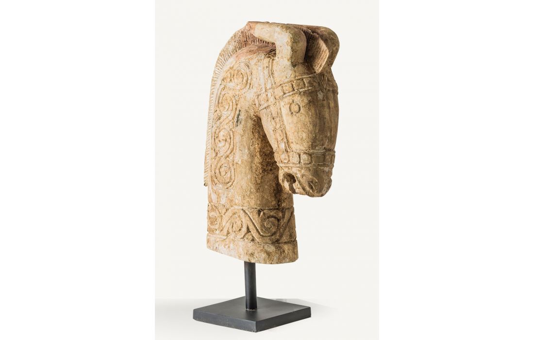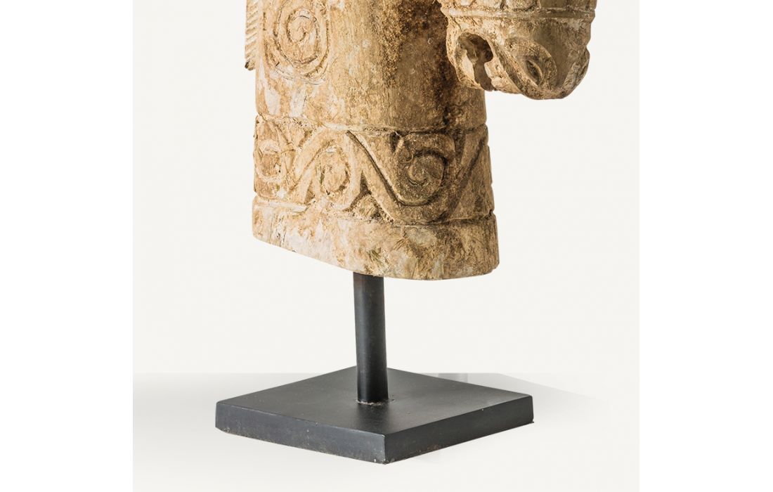 Figura decorativa de estilo étnico feita à mão em madeira de acacia cor natural envelhecido e base de ferro