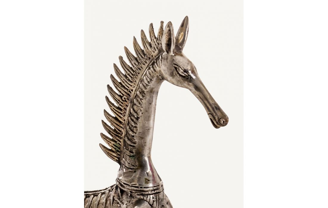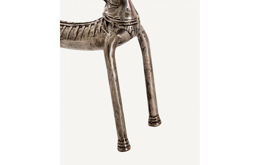 Figura pequena de leoa deitada, realizada em poliresina. Acabamento prateado com textura imitação de incrustações de pedras.Dimensões em cmL 64 P 32 A 22Prazo de Entrega05 a 10 dias