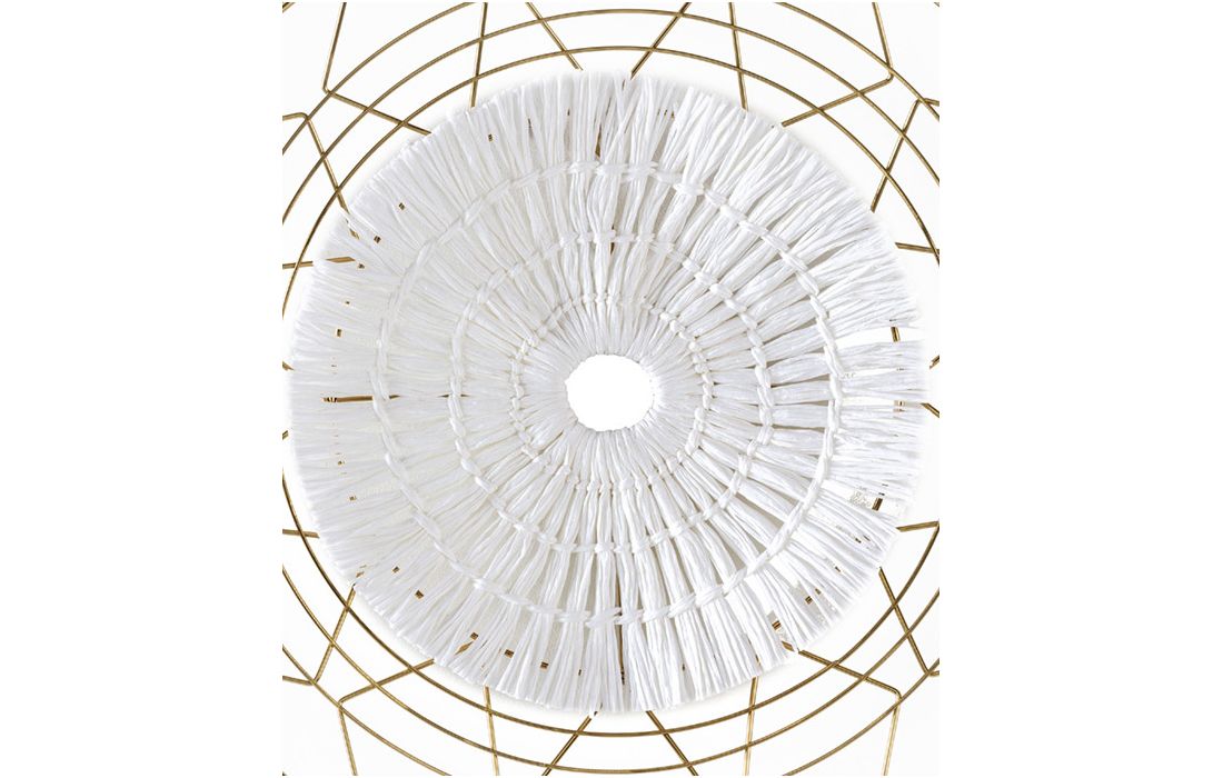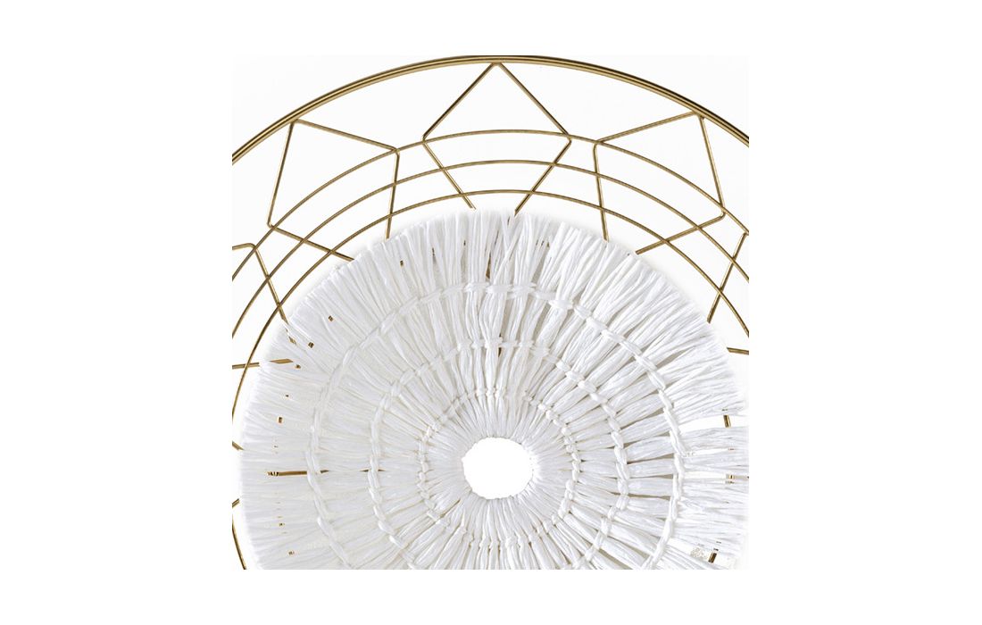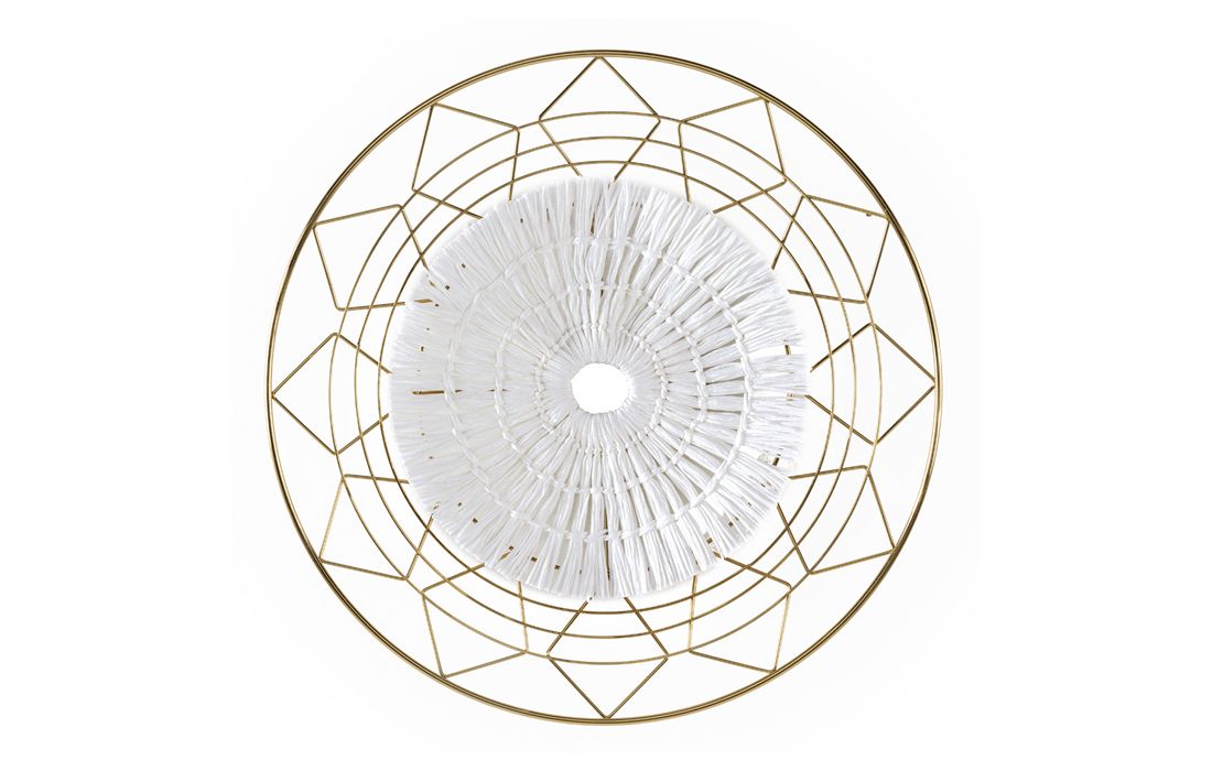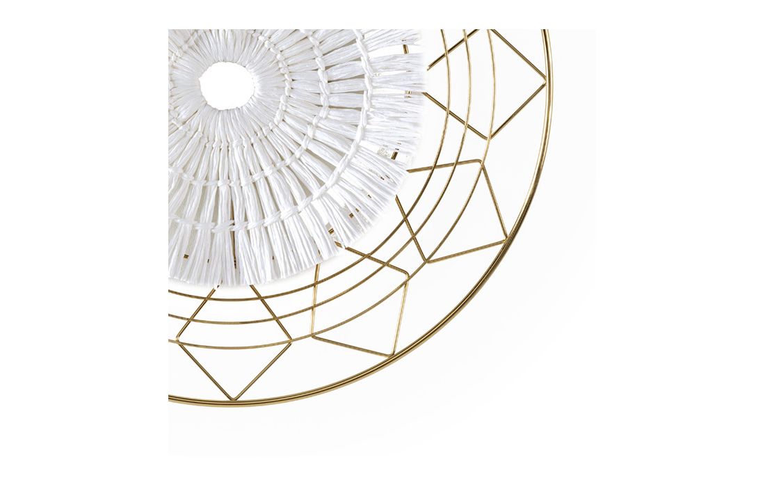Painel de parede decorativo feito em metal dourado e corda de papel cor branca