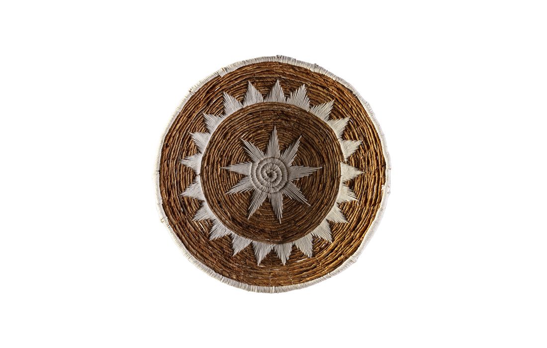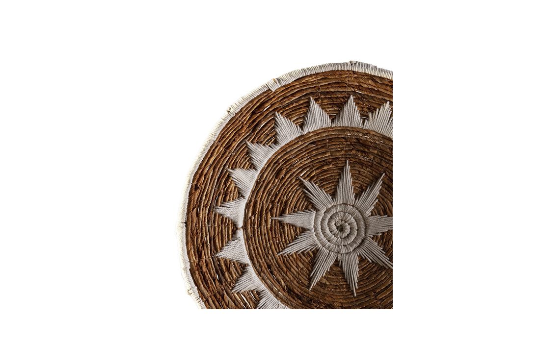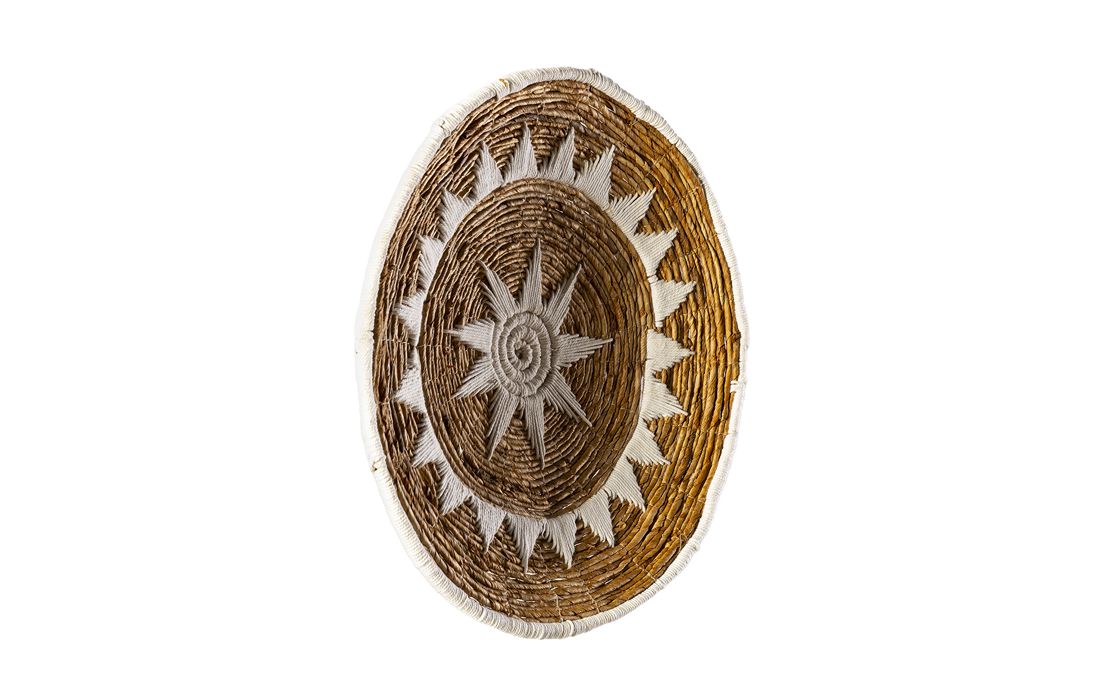 Painel de parede decorativo feito em folha de bananeira cor natural/branco