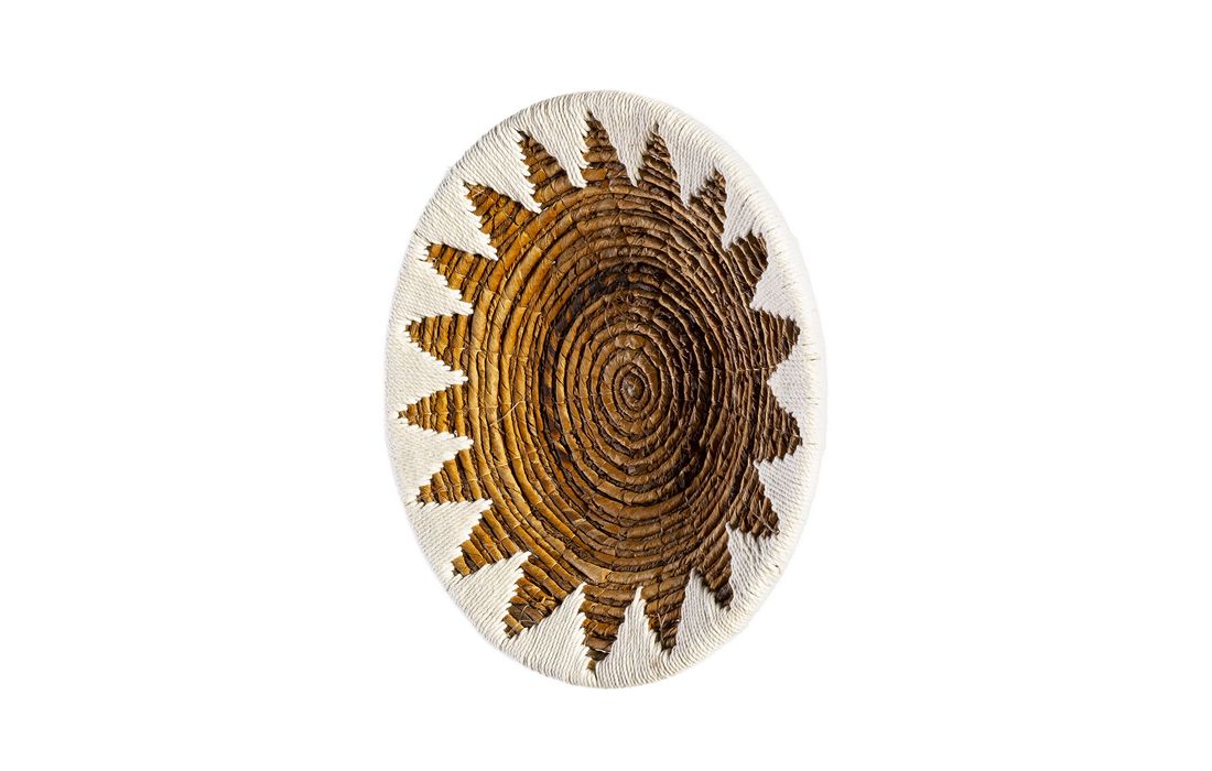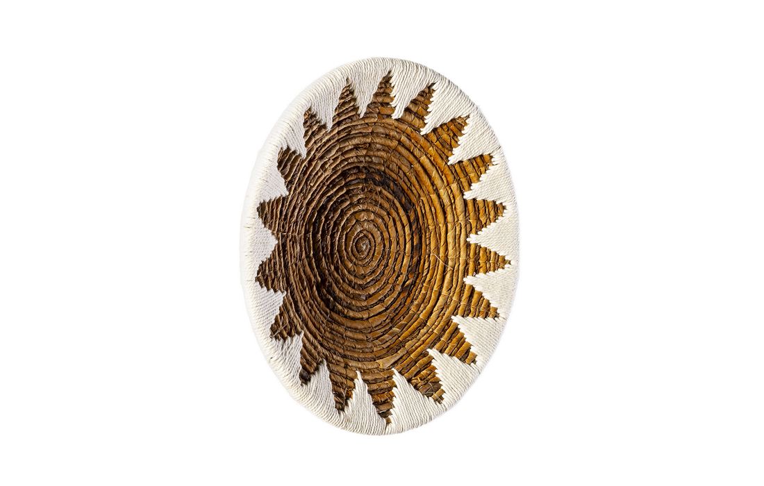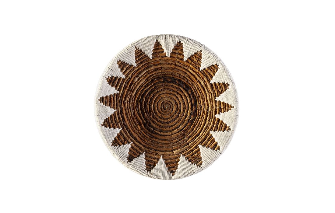Painel de parede decorativo feito em folha de bananeira cor natural/branco