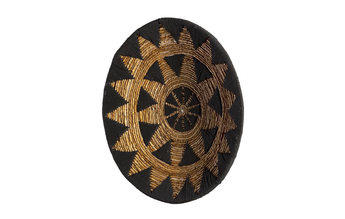 Painel de parede decorativo feito em folha de bananeira cor preto/natural