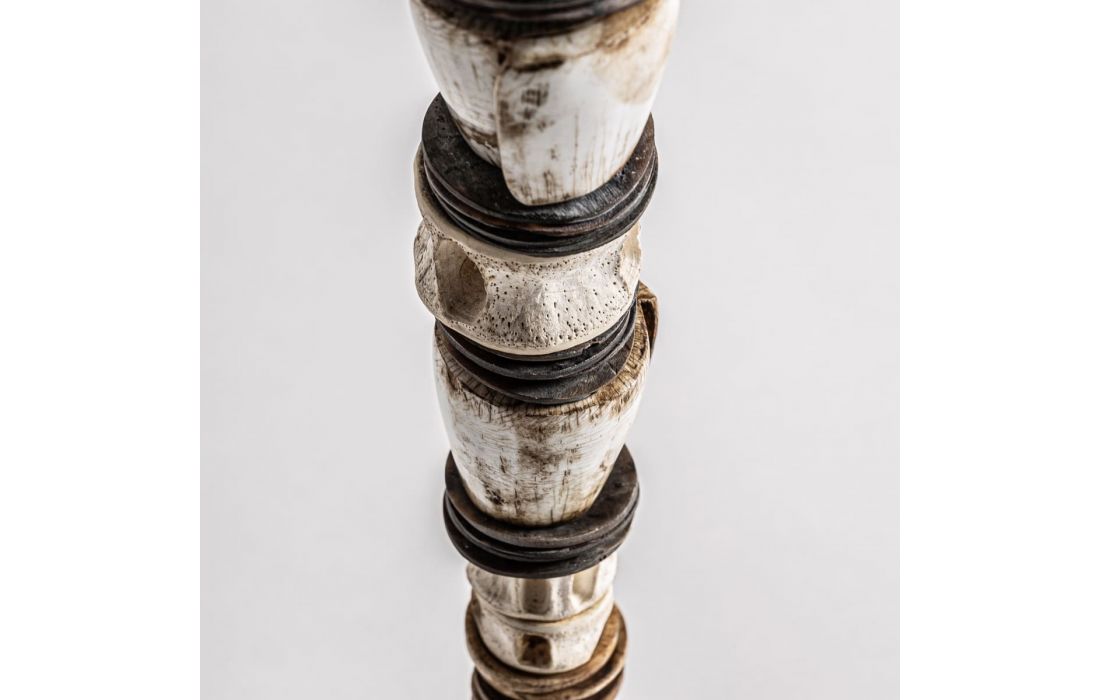 Peça decorativa no estilo étnico feita em ferro e concha na cor castanhaDestinatário :