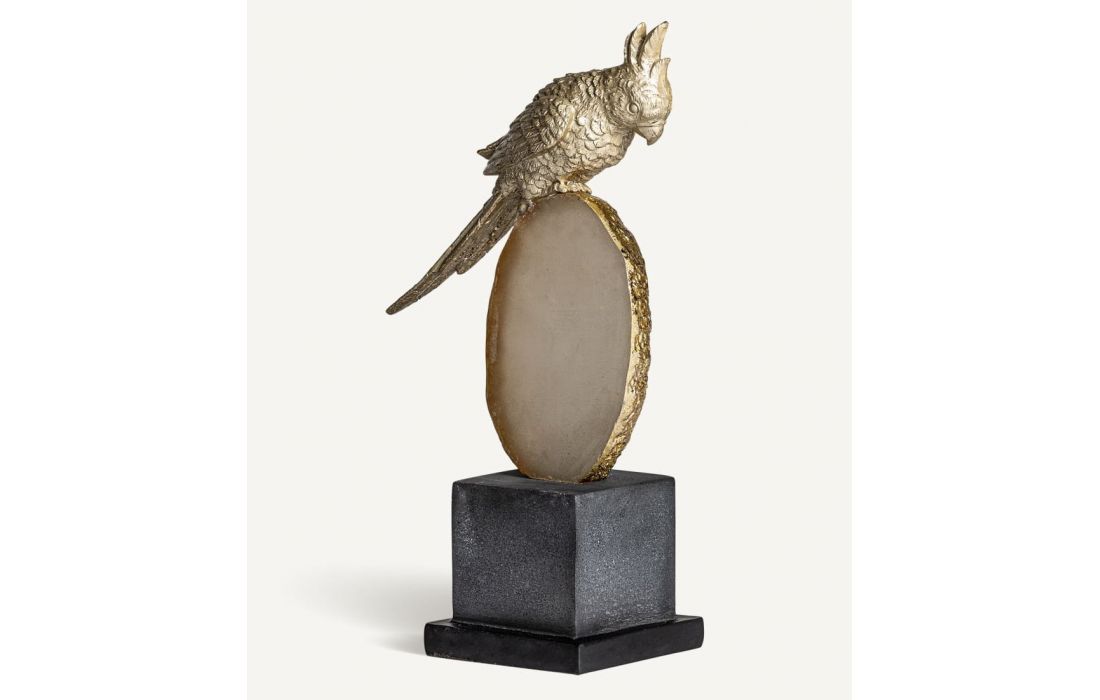 Peça decorativa no estilo art déco feita de resina na cor dourada e pretaDestinatário :
