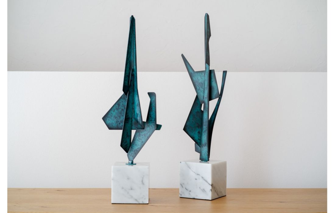 Peça decorativa em metal dourado/preto, disponivel em tamanho grande e pequeno.Dimensões em cmL 12 P 12 A 33 (pequeno)L 15 P 15 A 38 (grande)Prazo de Entrega10 a 20 dias